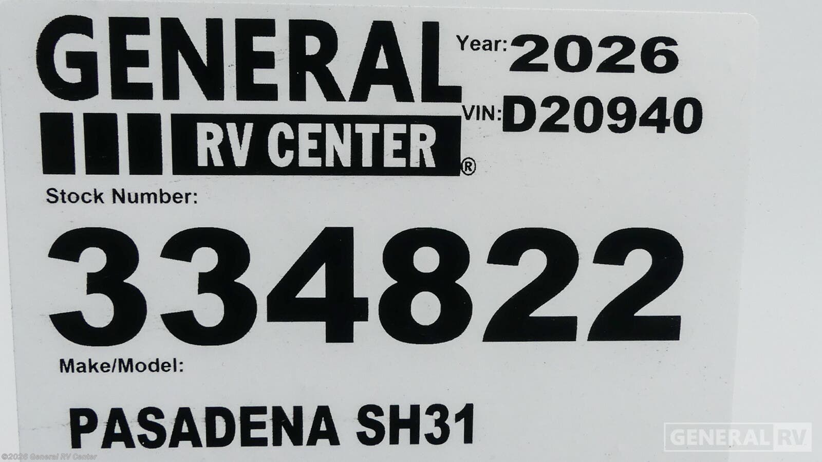 Request More Info on this 2026 Thor Motor Coach Pasadena SH31 Offered for sale by General RV Center
