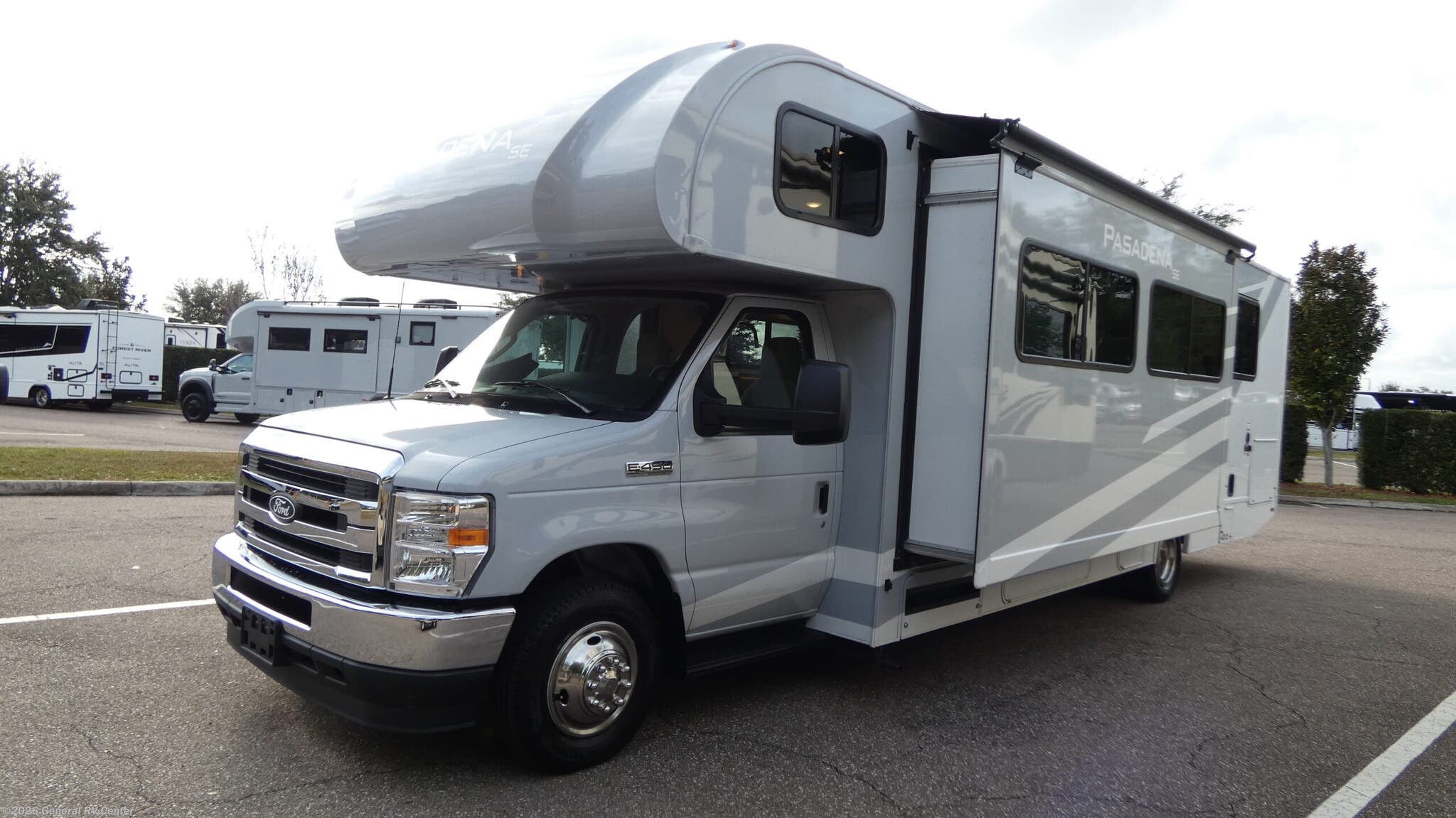 ****Thor Motor Coach Pasadena SE Class C gas motorhome SH31 highlights: * Rear Bedroom * 71" Dream Dinette * 24" x 36" Shower * 12V Refrigerator * Exterior Kitchen You're sure to have a great time in this coach that can sleep six each night! The rear bedroom includes an RV queen bed and dual closets to keep your things organized, plus the bath is close by for easy nighttime use. Here, you'll find a private toilet and sink, with the independent shower right across the hall. Your guests can sleep on the 68" jack knife sofa and 70" dream dinette within the large slide out, or the cab-over bunk up front! A three burner gas cooktop and microwave oven will let you make meals for your crew, and a 12V refrigerator will keep perishables fresh. This unit also includes an exterior kitchen, allowing you to cook in the open fresh air! With any Pasadena SE Class C gas motorhome by Thor Motor Coach, you will find convenient amenities, a modern interior, and a reliable Ford E-Series chassis on select models to power your adventures. There is a one-piece fiberglass front cap, and premium one-piece roofing for added strength. Residential vinyl flooring will be easy to keep clean, and you'll love the LED lighting, pressed laminate countertops throughout, and full-extensions ball-bearing drawer guides. These motorhomes also include a generator and a 30-amp shoreline power cord to keep you going, along with a tankless water heater to ensure your comfort!
