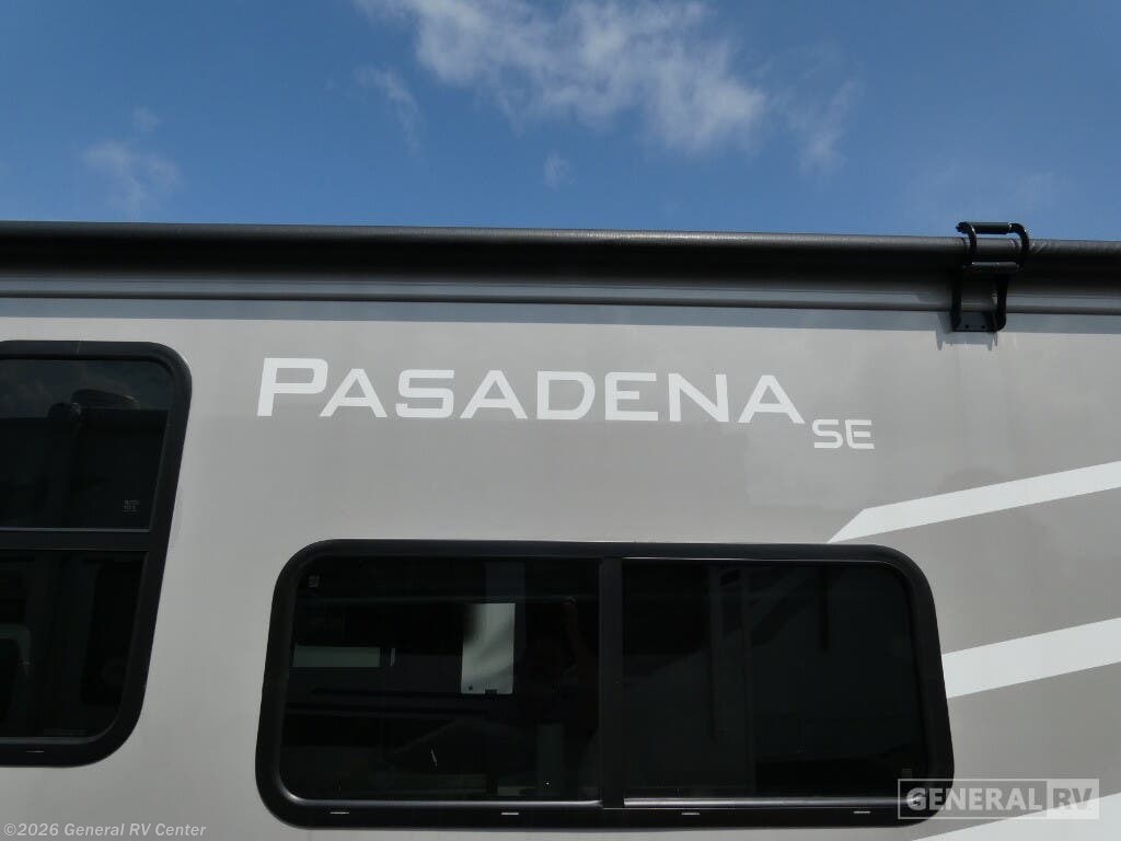Thor Motor Coach Pasadena SE Class C gas motorhome SL31 highlights: Full-Wall Slide RV Queen Bed Cab-Over Bunk Dream Dinette You'll love the amount of space in this coach with a full-wall slide! You can relax on the theater seating after traveling all day, then make dinner on the three burner gas cooktop. The Dream dinette provides a place to dine together, or you can take your plate outdoors to eat under the 16' power awning. The mid-coach full bath is right across from the 27" x 72" bunk beds for added convenience, and the rear private bedroom with an RV queen bed is sure to make you feel at home. With any Pasadena SE Class C gas motorhome by Thor Motor Coach, you will find convenient amenities, a modern interior, and a reliable Ford E-Series chassis on select models to power your adventures. There is a one-piece fiberglass front cap, and premium one-piece roofing for added strength. Residential vinyl flooring will be easy to keep clean, and you'll love the LED lighting, pressed laminate countertops throughout, and full-extensions ball-bearing drawer guides. These motorhomes also include a generator and a 30-amp shoreline power cord to keep you going, along with a tankless water heater to ensure your comfort!