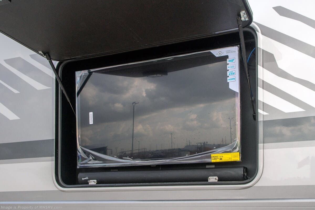 - Fully integrated Girard roof mount awning on patio side, awning boxes on both sides