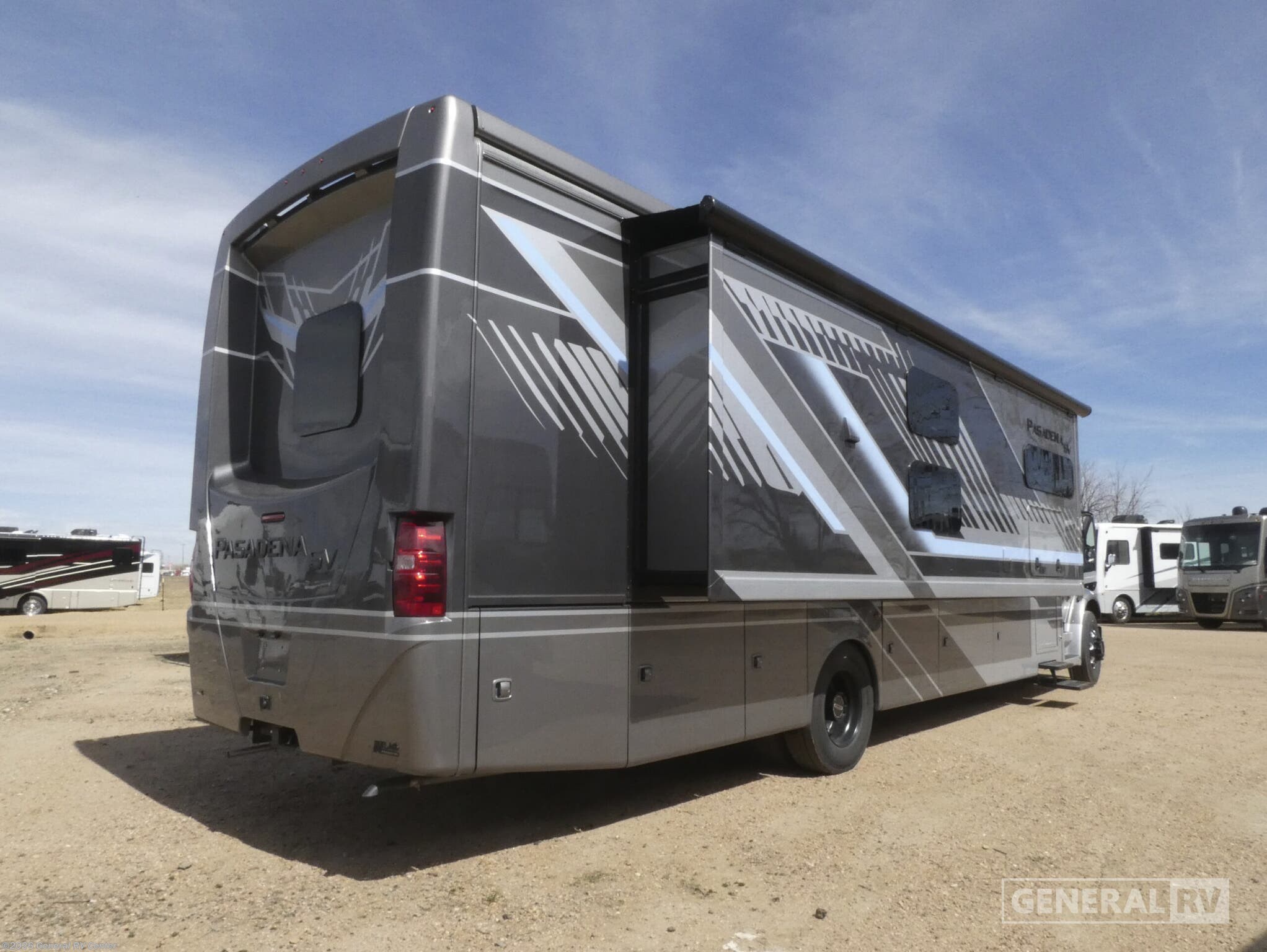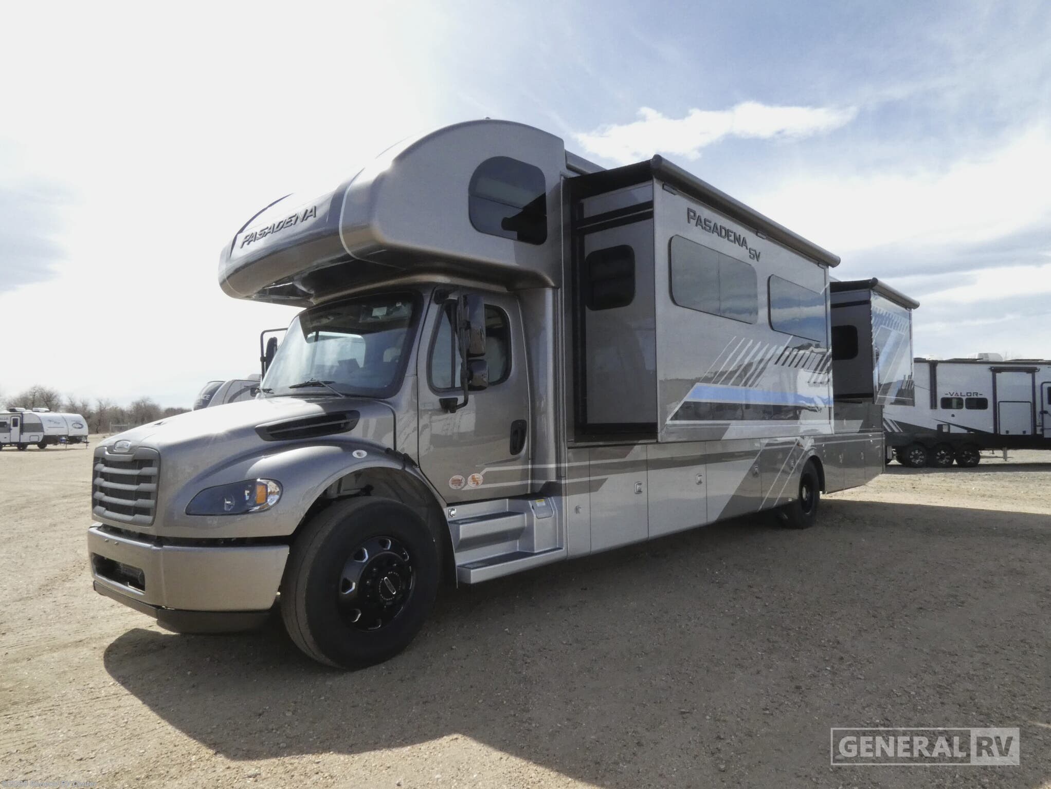 ## Thor Motor Coach Pasadena SV Super C diesel motorhome 38XL highlights: - Bath and a half - Triple slides - Dream Dinette - Cab-Over Bunk Built on the dependable Freightliner® S2RV chassis with an Atlas™ Foundation, this Pasadena® SV Super C RV is driven by a 360-horsepower Cummins 6.7L ISB-XT engine that cranks out 800 lb-ft of torque. Tow confidently using the 15,000-pound trailer hitch, and settle into air-ride adjustable captain’s chairs that make the journey worth it. With heated/remote mirrors, side-view cameras, and cruise control at your fingertips, the open road has never felt this comfortable. The Pasadena® SV turns heads with its striking full-body, sleek gel-coated sidewalls, and Stealth Black-Out Package. After hiking, kick back beneath the power patio awning with integrated LED lighting and store your outdoor gear in the large basement pass-through storage compartments. Once you’re ready to unplug, use the standard 100-watt solar panel to keep your energy flowing. Wherever you roam, the Pasadena® SV keeps you plugged in and entertained thanks to the Winegard® ConnecT™ 5G system onboard, which works as an all-in-one Wi-Fi extender, 5G hotspot, and TV antenna. Binge your favorite shows on the Smart TVs inside, or take movie night outdoors with the 40-inch exterior LED TV. Up front, the 10-inch touchscreen dash radio puts control at your fingertips, loaded with Bluetooth®, Apple CarPlay®, Android Auto™, and SiriusXM® capability, because epic road trips deserve an epic soundtrack. With the Pasadena® SV, the road trips feel more like a luxury resort on wheels. Gather around the multi-functional Dream Dinette®, your go-to spot for dinner, game night, or remote work, featuring cup holders and a built-in wireless charger. When it’s time to relax, sink into the cozy theater seating that heats, massages, and reclines with footrests, USB ports, and cup holders. In the 38DX, 38FX, and 38XL floor plans, a remote-controlled electric fireplace sets the mood with just one click. When it’s time to wind down, the Pasadena® SV delivers next-level comfort for every kind of traveler. Stretch out on the King bed with a Tilt-A-View® feature that lets you kick back and watch TV or read a book in total relaxation. Above the cab, a cozy bunk with a shaded skylight doubles as a front-row seat for stargazing. If you need more sleeping space, the Dream Dinette® quickly converts into a bed for overnight guests.