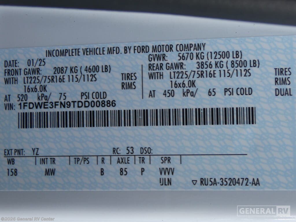 - VIN1FDWE3FN9TDD00886