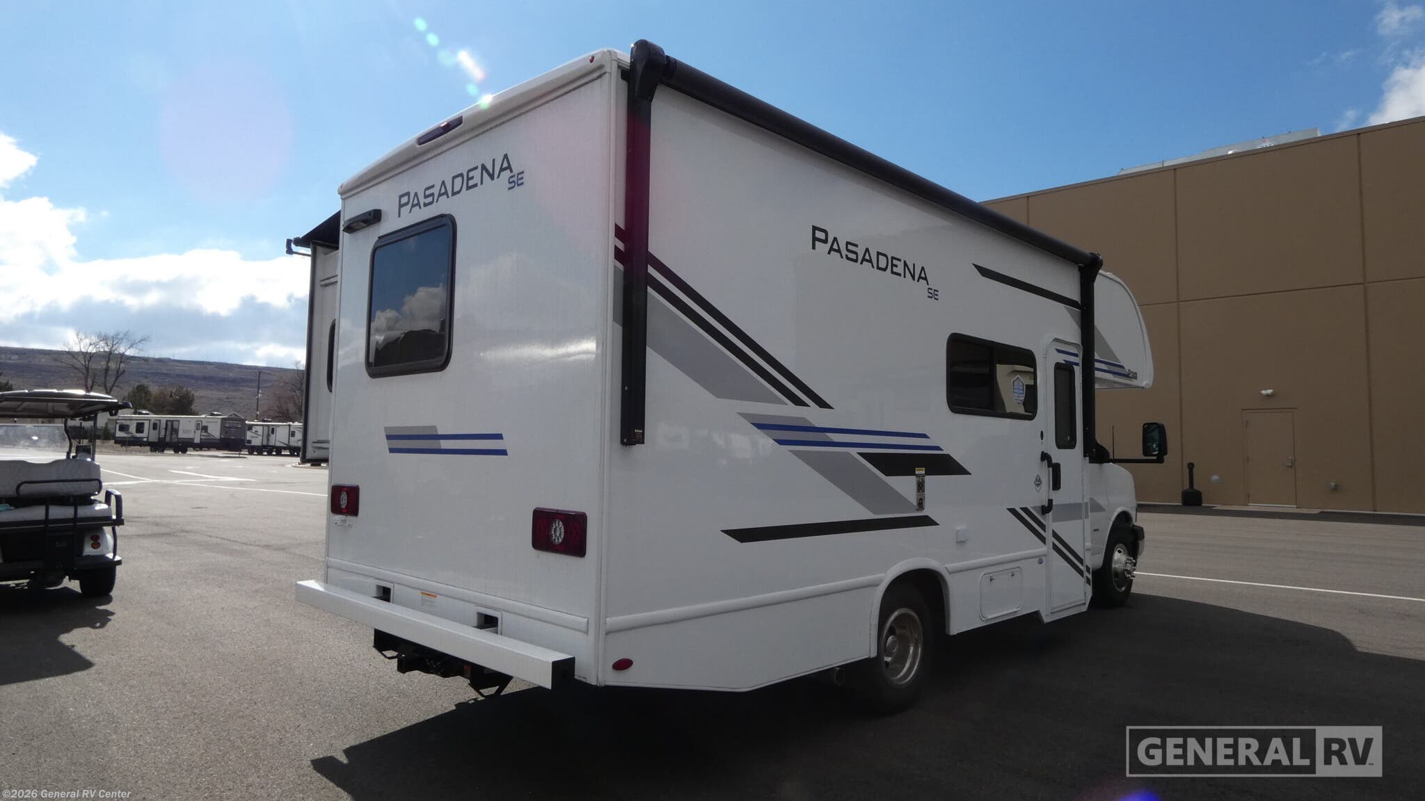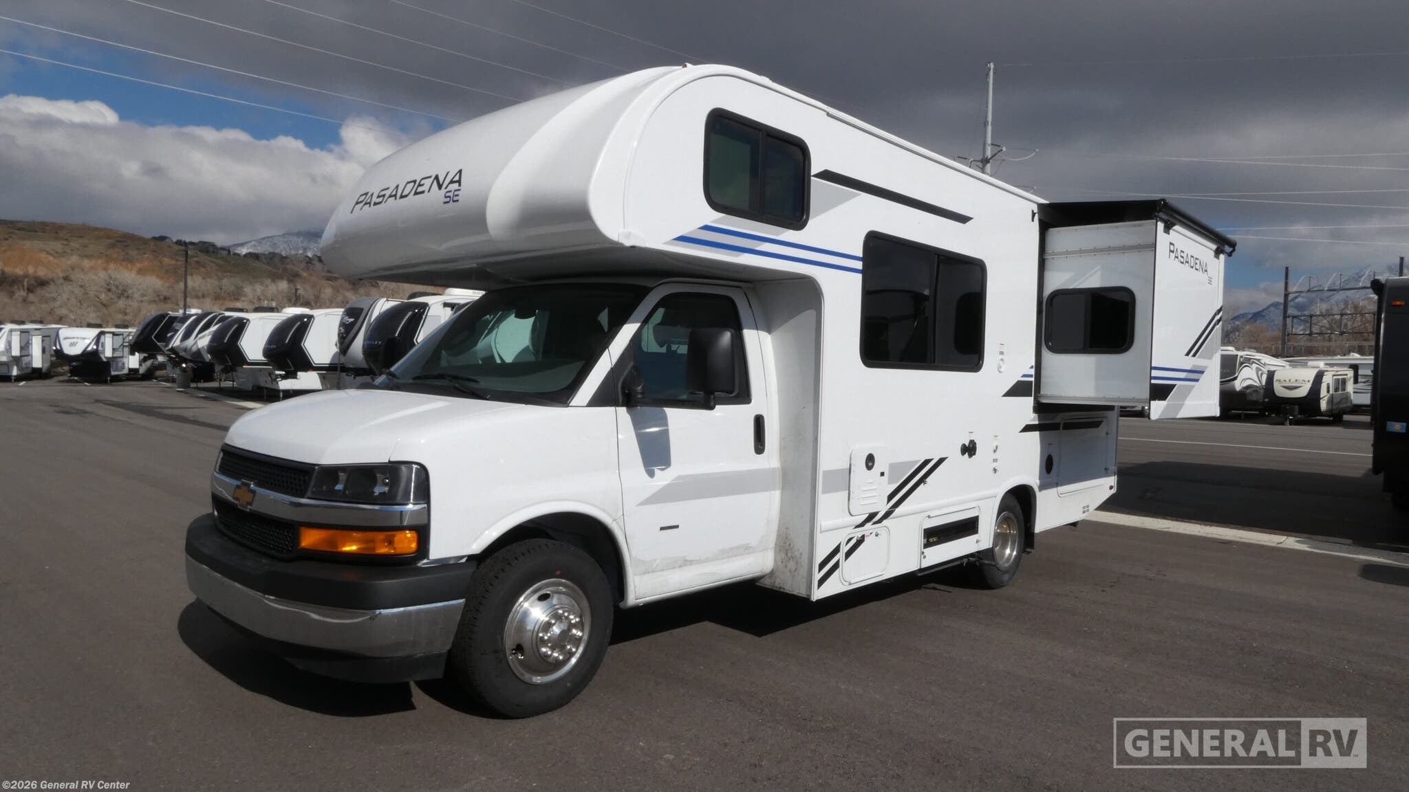 **Thor Motor Coach Pasadena SE Class C gas motorhome SZ22 highlights:** * RV Queen Bed Slide * Closet * Dream Dinette * Cab-Over Bunk It won't be hard to find comfort in this coach for five! You can freshen up in the rear corner full bath once you've set up camp, then make lunch on the two burner gas cooktop or convection microwave with an air fryer. There is also a 12V refrigerator for cold items and a flip-up countertop for more space. Whether you dine at the Dream Dinette or take your plate outdoors under the 15' power awning, you're sure to have a great time in this motorhome. There is a semi-private bedroom with a 60" x 74" RV queen bed slide and bedroom TV prep if you want the option to watch movies in bed. And your guests can take the Dream Dinette and cab-over bunk at night! With any Pasadena SE Class C gas motorhome by Thor Motor Coach, you will find convenient amenities, a modern interior, and a reliable Ford E-Series chassis, with an optional Chevy chassis on select models to power your adventures. There is a one-piece fiberglass front cap, and premium one-piece roofing for added strength. Residential vinyl flooring will be easy to keep clean, and you'll love the LED lighting, pressed laminate countertops throughout, and full-extensions ball-bearing drawer guides. These motorhomes also include a 4.0 kW gas generator and a 30-amp shoreline power cord to keep you going, along with a tankless water heater to ensure your comfort!
