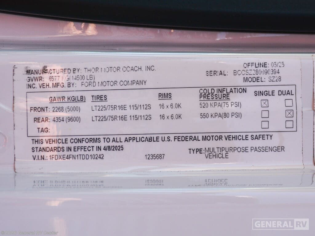 Request More Info on this 2026 Thor Motor Coach Pasadena SZ28 Offered for sale by General RV Center