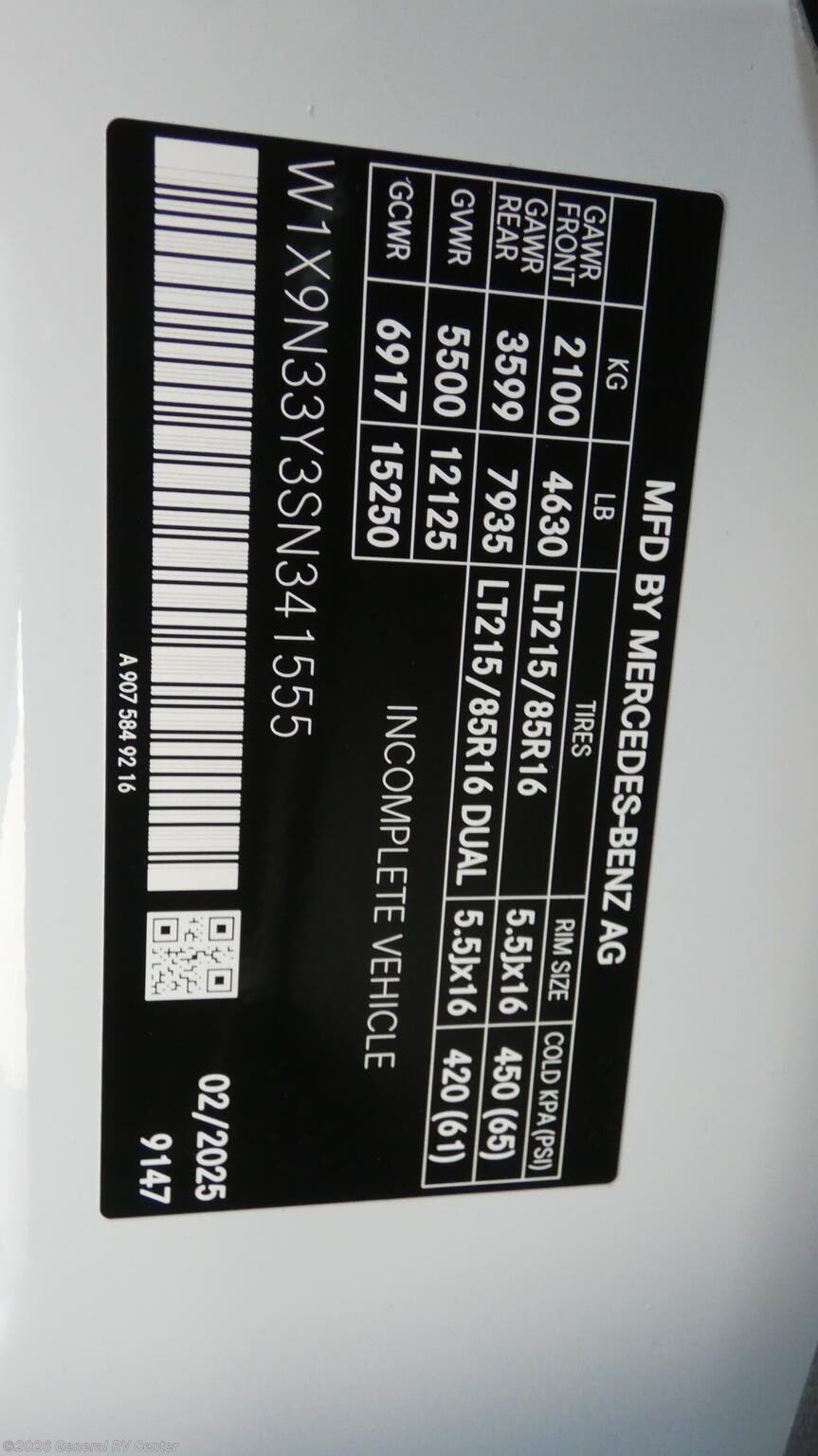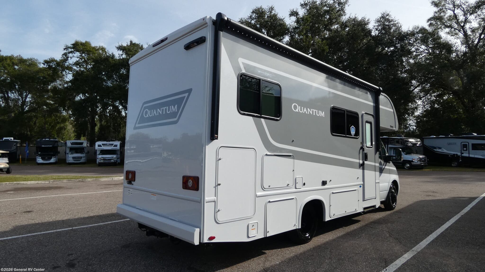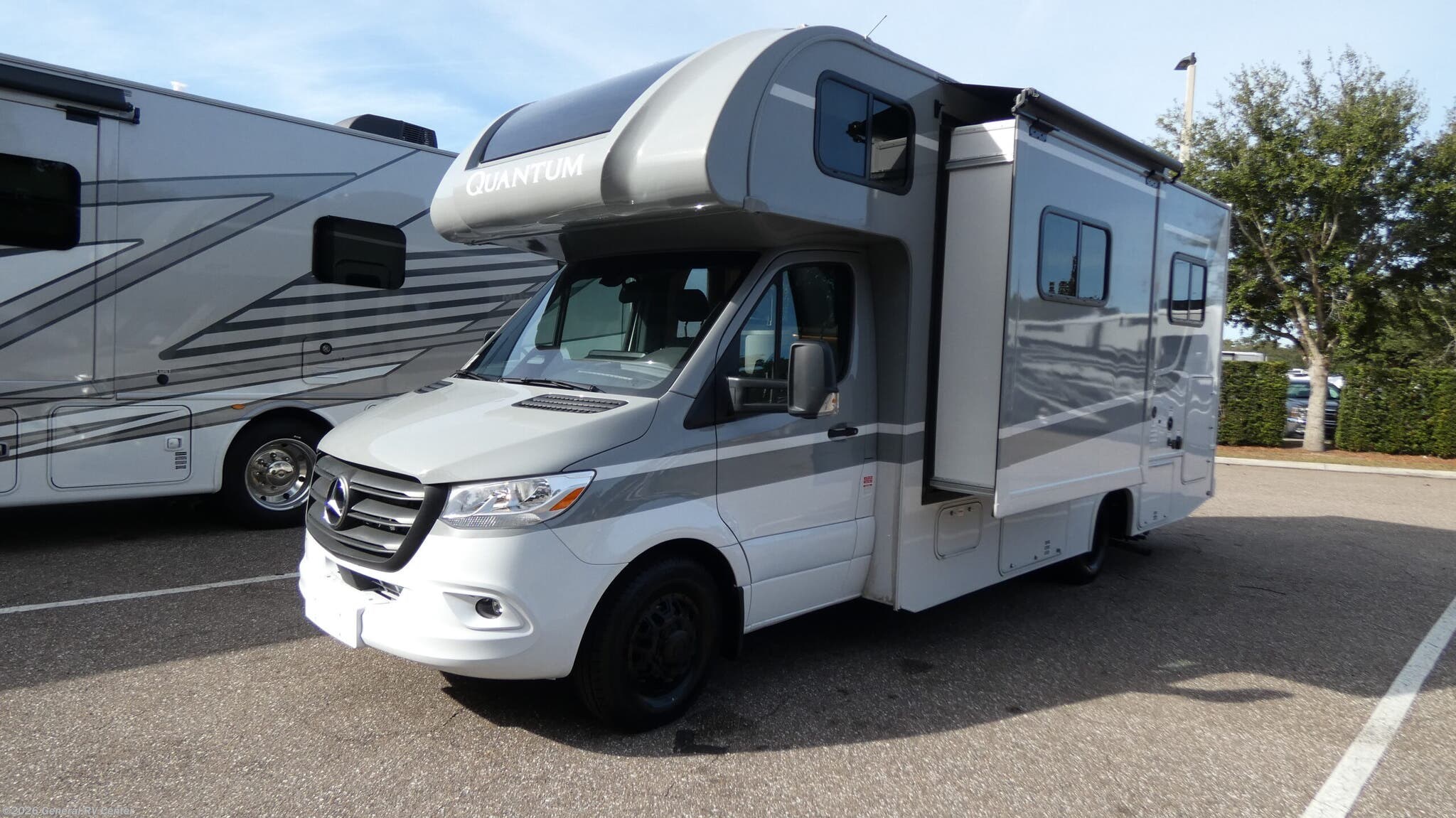 Step into the 2026 Thor Motor Coach Quantum Sprinter GL24, where luxury meets practicality in a compact yet spacious design. This elegant motorhome is built on the reliable Mercedes-Benz Sprinter 4500 chassis, powered by a robust 211-horsepower diesel engine, ensuring a smooth and efficient journey wherever the road takes you. With a length of just under 26 feet, this RV is perfect for both seasoned travelers and those new to the RV lifestyle. The thoughtfully designed floorplan features a center kitchen and living area, making it easy to prepare meals and entertain guests. The kitchen boasts a three-burner cooktop and convection cooking, while the mid-size electric refrigerator ensures you have ample space for all your culinary delights. As you move towards the rear, the Quantum Sprinter GL24 offers sleeping accommodations for up to four people, including a versatile twin-to-king bed conversion option, ensuring a restful night's sleep. The cab-over bunk provides additional sleeping space, making it ideal for families or friends traveling together. The center bath features a convenient shower with a curtain, offering privacy and functionality. Enjoy outdoor living with the 16.5 ft. powered retractable awning, perfect for those sunny days and starry nights. Whether you're embarking on a weekend getaway or a cross-country adventure, the Quantum Sprinter GL24 combines style, comfort, and innovation to make every journey memorable. For more information, visit your nearest General RV dealership.