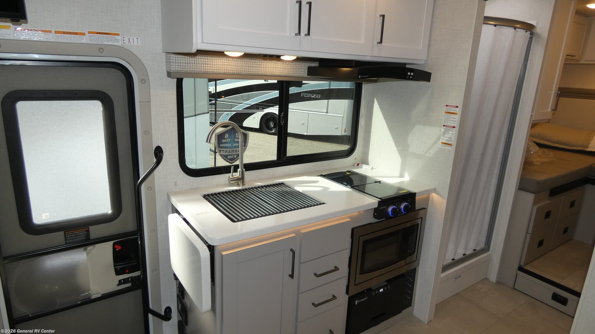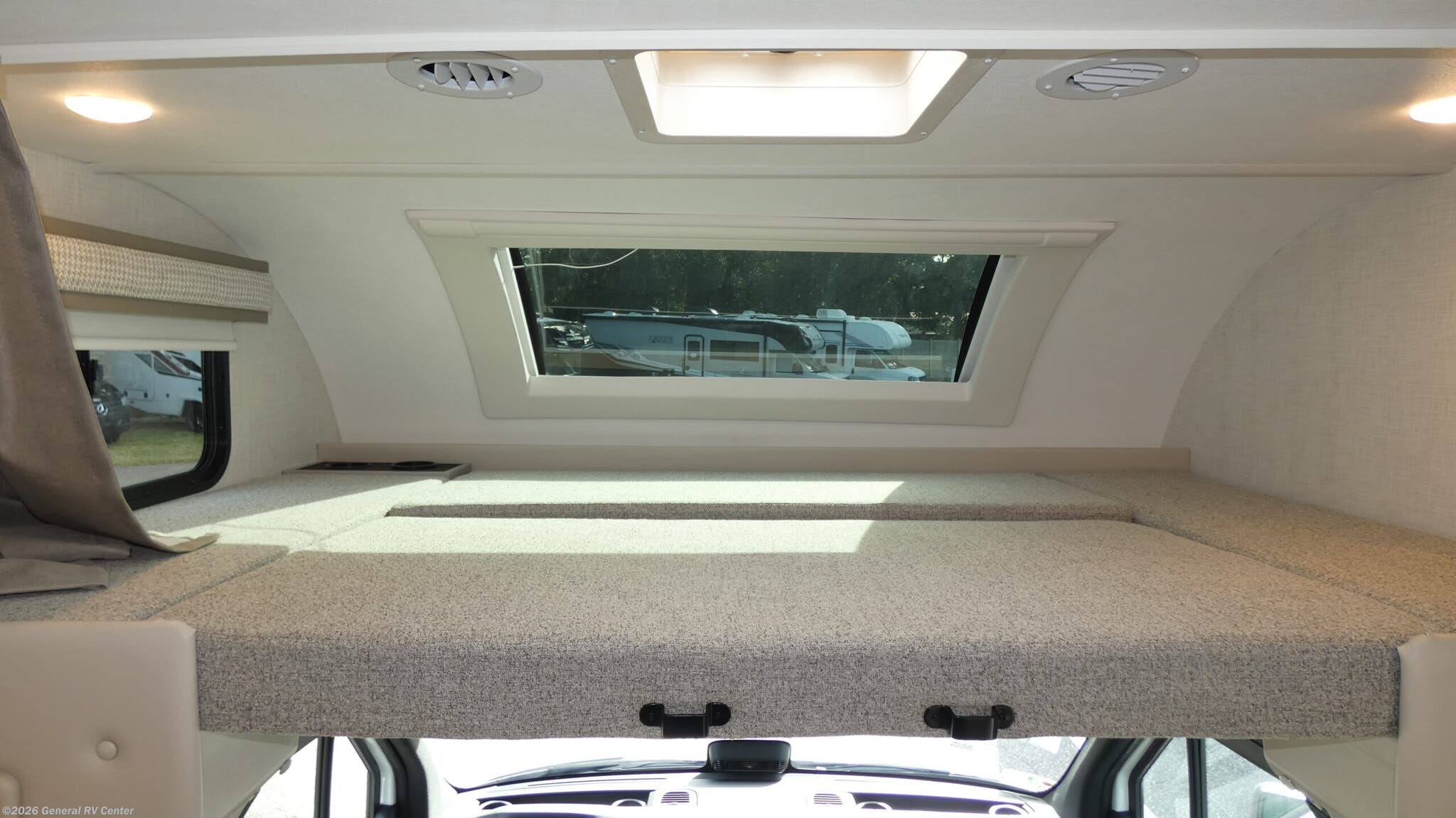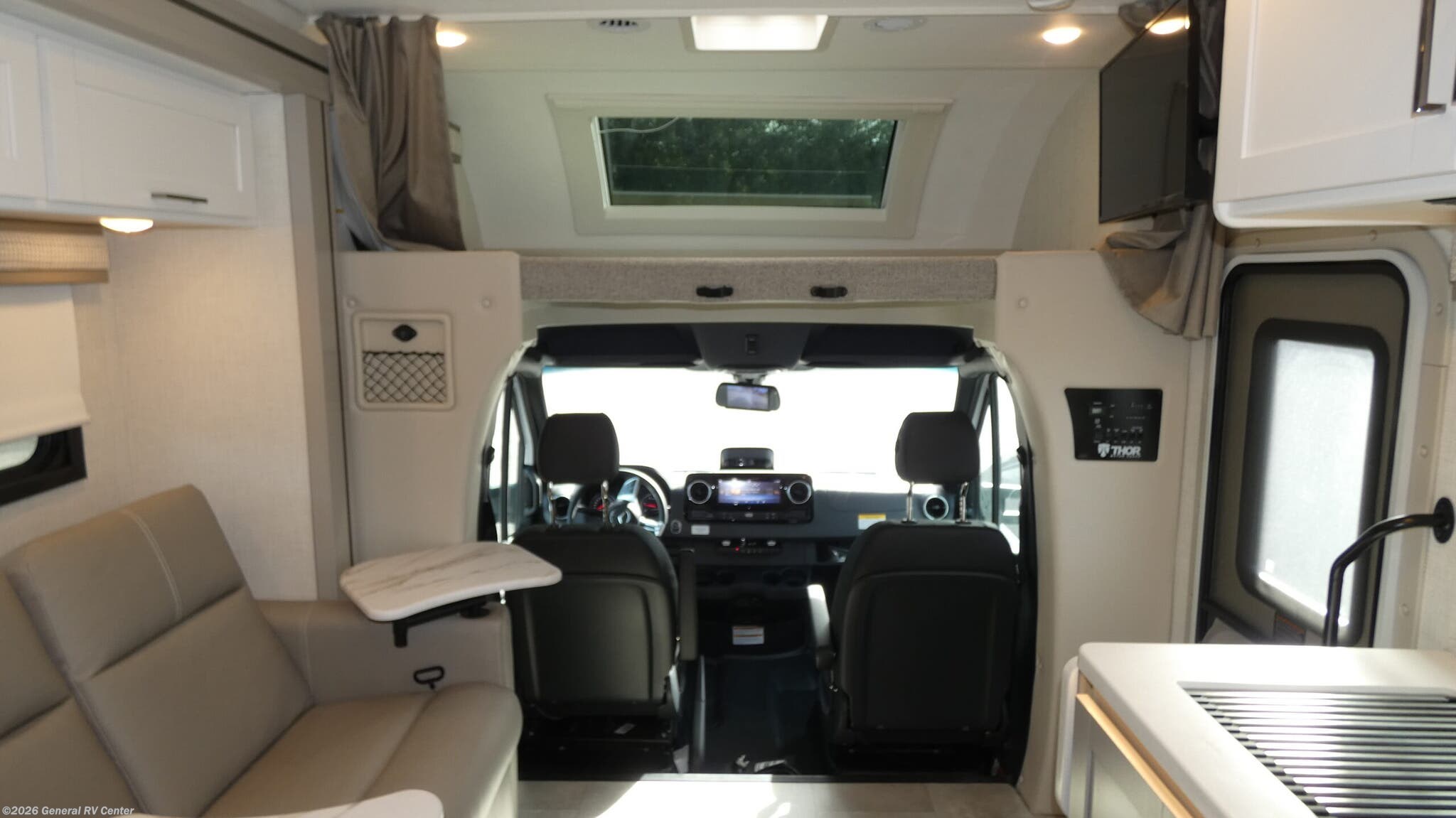 Step into the 2026 Thor Motor Coach Quantum Sprinter GL24, where luxury meets practicality in a compact yet spacious design. This elegant motorhome is built on the reliable Mercedes-Benz Sprinter 4500 chassis, powered by a robust 211-horsepower diesel engine, ensuring a smooth and efficient journey wherever the road takes you. With a length of just under 26 feet, this RV is perfect for both seasoned travelers and those new to the RV lifestyle. The thoughtfully designed floorplan features a center kitchen and living area, making it easy to prepare meals and entertain guests. The kitchen boasts a three-burner cooktop and convection cooking, while the mid-size electric refrigerator ensures you have ample space for all your culinary delights. As you move towards the rear, the Quantum Sprinter GL24 offers sleeping accommodations for up to four people, including a versatile twin-to-king bed conversion option, ensuring a restful night's sleep. The cab-over bunk provides additional sleeping space, making it ideal for families or friends traveling together. The center bath features a convenient shower with a curtain, offering privacy and functionality. Enjoy outdoor living with the 16.5 ft. powered retractable awning, perfect for those sunny days and starry nights. Whether you're embarking on a weekend getaway or a cross-country adventure, the Quantum Sprinter GL24 combines style, comfort, and innovation to make every journey memorable. For more information, visit your nearest General RV dealership.