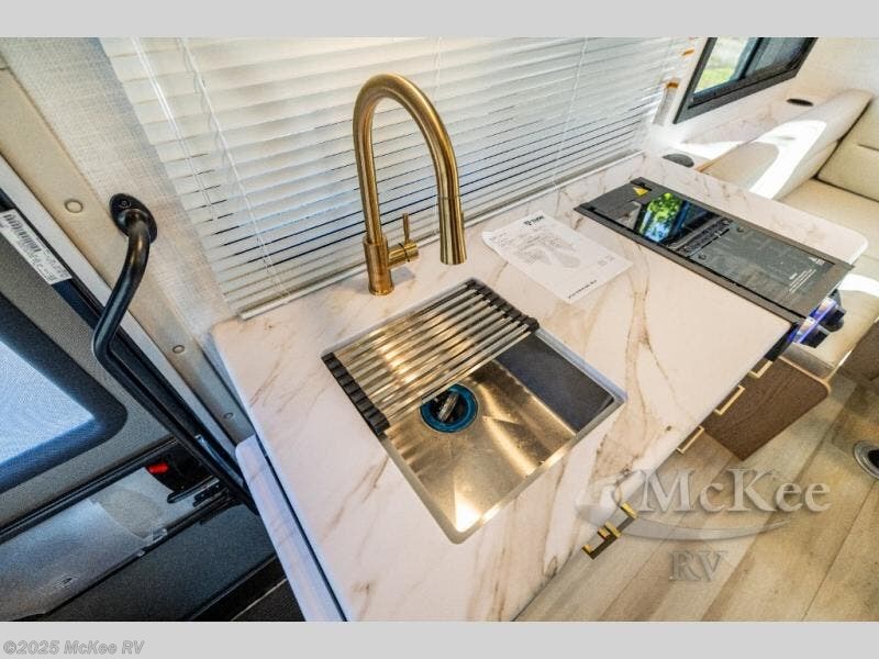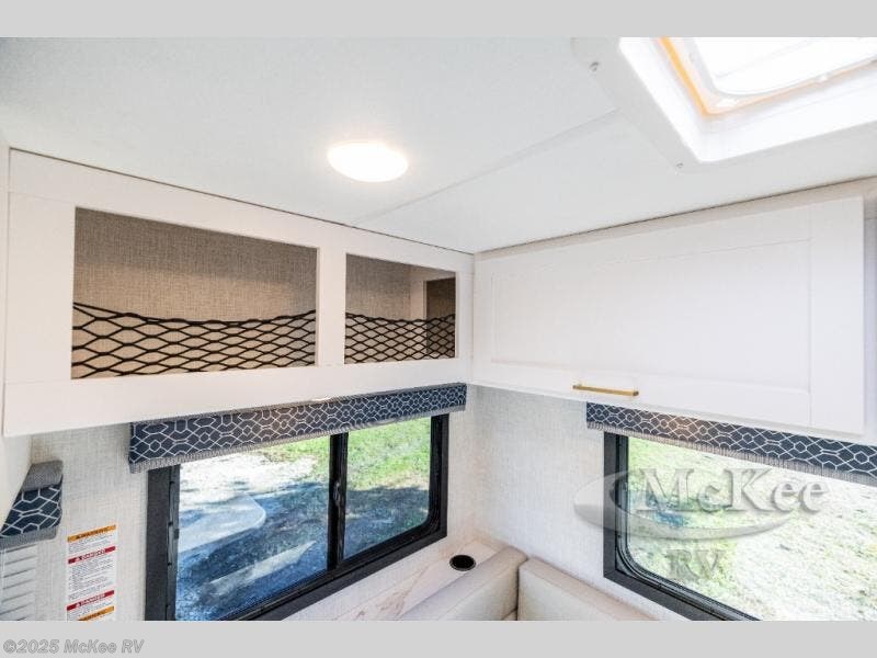 This compact, yet cozy coach is perfect for trips to the campground each weekend! Once you've reached your destination, you can set up the 11' power awning, unload the exterior storage compartments, and relax in your camp chairs. The two burner gas cooktop and convection microwave with an air fryer will let you make meals each day, and there is a 12V refrigerator to keep food fresh. A flip-up counter is another great feature that will give you more prep space! You can freshen up in the wet bath, grab your night clothes from the closet, then convert the U-shaped dinette into a 54" x 77" bed for a great night's rest!