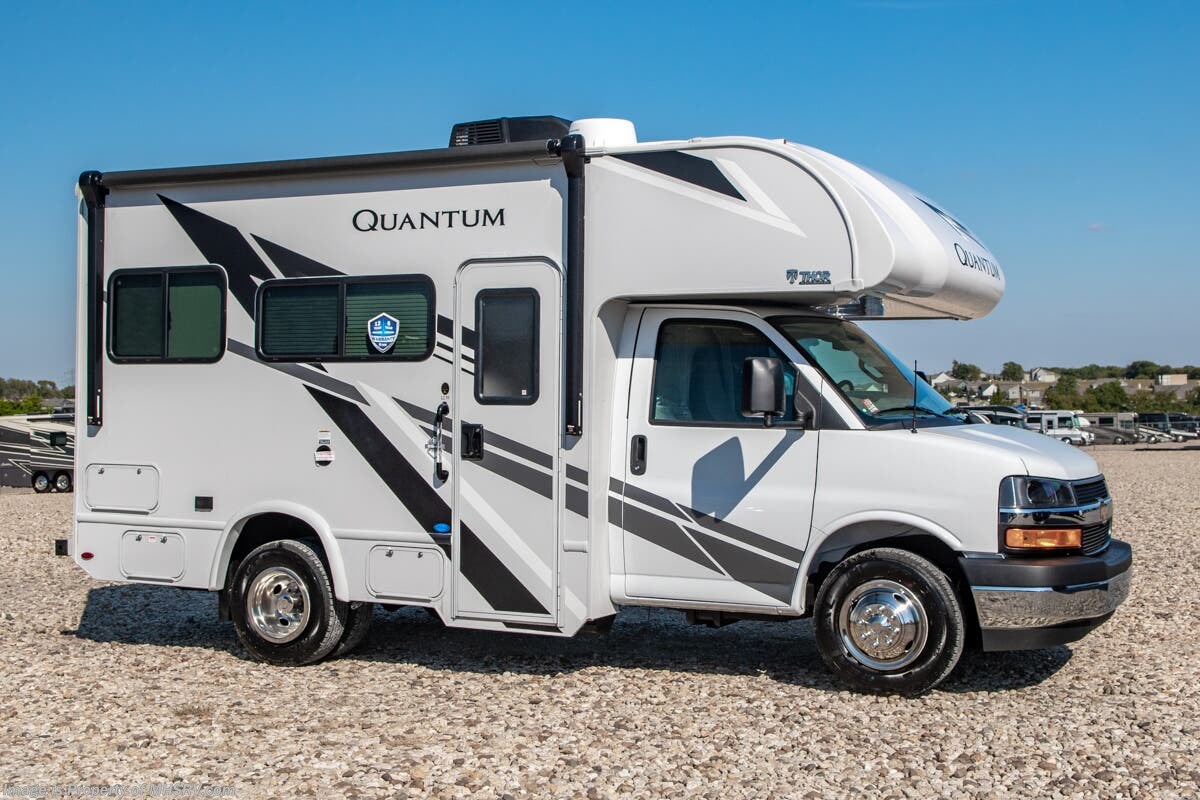 MSRP $125,706. New 2026 Thor Motor Coach Quantum LC19 Class C RV. Shop hundreds of motorhomes including Class C RVs at MHSRV! Choose from Fleetwood Altitude - Gulf Stream BT Cruiser - Thor Chateau - Four Winds - Geneva and Quantum - Entegra Coach Odyssey Odyssey SE and Esteem - East to West Entrada - Forest River Forester - Forester LE - Nexus Phantom - Viper and much more. We also sell quality pre-owned models such as Jayco Greyhawk – Redhawk - Redhawk SE - Thor Magnitude - Winnebago Spirit - and Minnie Winnie - Coachmen Freelander and Leprechaun - Forest River Sunseeker Classic - Sunseeker LE – Solera - Holiday Rambler Incline and much more. Visit for our complete line-up and the sale prices that have made us the #1 volume selling motor home dealership in the world 12 years in a row! About This RV This RV is approximately 20 feet 5 inches in length with a Chevrolet Chassis and Engine. More features include the touchscreen dash radio, back-up monitor, stainless steel wheel liners, solid surface kitchen counter-top, premium window privacy shades. The Quantum Class C RV has an incredible list of standard features including one-piece fiberglass front cap, one-piece upper rear cap, rotocast storage compartments, back-up monitor, full extension soft close metal ball-bearing drawer guides, window privacy shades, cab-over sleeping area with cup holders and much more. About Us For more details on this unit, our full inventory, brochures, window stickers, videos, photos, and customer reviews, visit or call 800-335-6054 for the Texas location or 334-288-0331 for our Alabama location. At Motor Home Specialist, we never charge prep or orientation fees. Every new RV sale includes a multi-point inspection, full interior and exterior detail, and a high-pressure rain booth test—an exclusive service in the industry. You'll also receive a comprehensive coach orientation with an MHSRV technician and a complimentary night in our delivery park with full hook-ups. --Why Pay More? Why Settle for Less?—