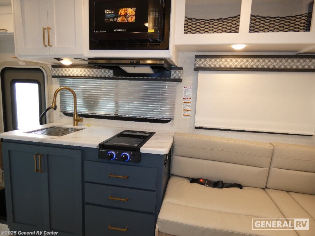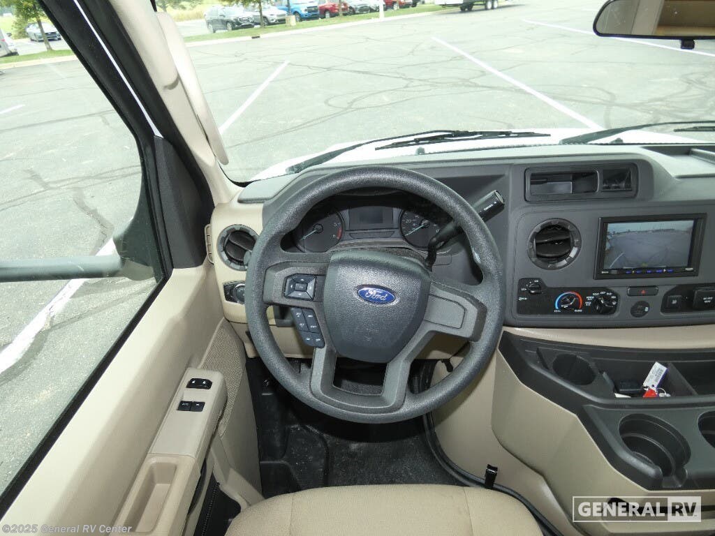 The Thor Motor Coach Quantum LC19 is a compact Class C motorhome designed for travelers seeking a balance between maneuverability and comfort. Built on a Ford E-Series chassis, it is powered by a 7.3L V8 engine that delivers 325 horsepower and 450 lb-ft of torque, ensuring a robust and reliable driving experience. Measuring approximately 20 feet 5 inches in length, the LC19 is well-suited for both city driving and open-road adventures, offering ease of handling without compromising on essential amenities. Inside, the Quantum LC19 maximizes its space with a thoughtfully designed floor plan. The living area features a dinette that can be converted into a sleeping space, accommodating up to two people comfortably. The kitchen is equipped with essential amenities, including a refrigerator, microwave oven, and a two-burner gas cooktop, allowing for convenient meal preparation on the go. A compact yet functional bathroom provides the necessary facilities without taking up excessive space. Modern conveniences such as a touchscreen dash radio with Bluetooth® connectivity enhance the travel experience, making the Quantum LC19 a practical choice for those seeking adventure without sacrificing comfort.