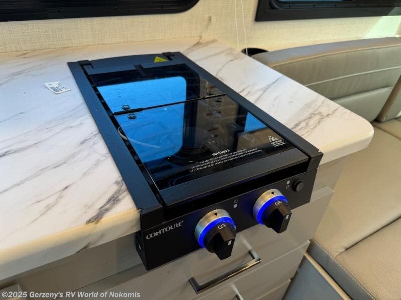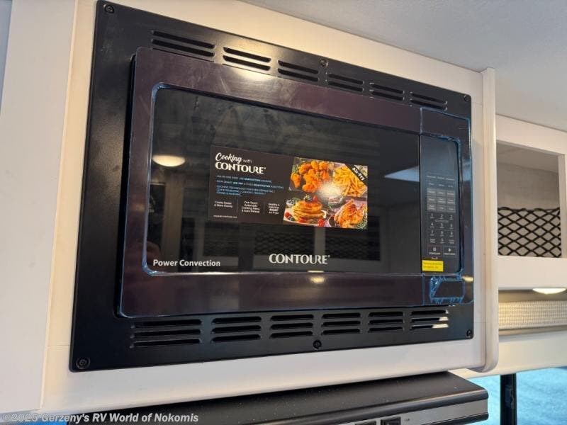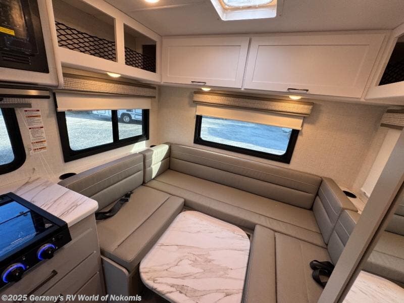 This compact, yet cozy coach is perfect for trips to the campground each weekend! Once you've reached your destination, you can set up the 11' power awning, unload the exterior storage compartments, and relax in your camp chairs. The two burner gas cooktop and convection microwave with an air fryer will let you make meals each day, and there is a 12V refrigerator to keep food fresh. A flip-up counter is another great feature that will give you more prep space! You can freshen up in the wet bath, grab your night clothes from the closet, then convert the U-shaped dinette into a 54" x 77" bed for a great night's rest!