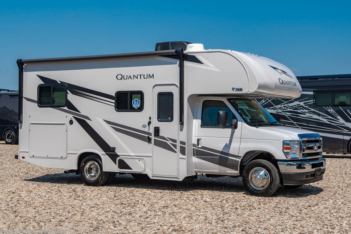 MSRP $134,106. New 2026 Thor Motor Coach Quantum LC21 Class C RV is approximately 24 feet 1 inches in length with a Ford chassis. More features include the SmoothTECH Suspension, touchscreen dash radio, back-up monitor, stainless steel wheel liners, solid surface kitchen counter-top, premium window privacy shades. The Quantum Class C RV has an incredible list of standard features including one-piece fiberglass front cap, one-piece upper rear cap, rotocast storage compartments, back-up monitor, Apple CarPlay/Android Auto, Keyless entry key fob, full extension soft close metal ball-bearing drawer guides, window privacy shades, cab-over sleeping area with cup holders and much more. Shop hundreds of class C gas RVs at 1 location! Choose from Fleetwood Altitude - Gulf Stream BT Cruiser - Thor Chateau - Four Winds - Geneva and Quantum - Entegra Coach Odyssey Odyssey SE and Esteem - East to West Entrada - Forest River Forester - Forester LE - Nexus Phantom - Viper and much more. We also sell quality pre-owned models such as Jayco Greyhawk – Redhawk - Redhawk SE - Thor Magnitude - Winnebago Spirit - and Minnie Winnie - Coachmen Freelander and Leprechaun - Forest River Sunseeker Classic - Sunseeker LE – Solera - Holiday Rambler Incline and much more. Visit for our complete line-up and the sale prices that have made us the #1 volume selling motor home dealership in the world 12 years in a row! For additional details on this unit and our entire inventory including brochures, window sticker, videos, photos, reviews & testimonials as well as additional information about Motor Home Specialist and our manufacturers please visit us at or call 800-335-6054. At Motor Home Specialist, we DO NOT charge any prep or orientation fees like you will find at other dealerships. All sale prices include a 200-point inspection, interior & exterior wash, detail service and a fully automated high-pressure rain booth test and coach wash that is a standout service unlike that of any other in the industry. You will also receive a thorough coach orientation with an MHSRV technician, a night stay in our delivery park featuring landscaped and covered pads with full hook-ups and much more! Read Thousands upon Thousands of 5-Star Reviews at and See What They Had to Say About Their Experience at Motor Home Specialist. WHY PAY MORE? WHY SETTLE FOR LESS?
