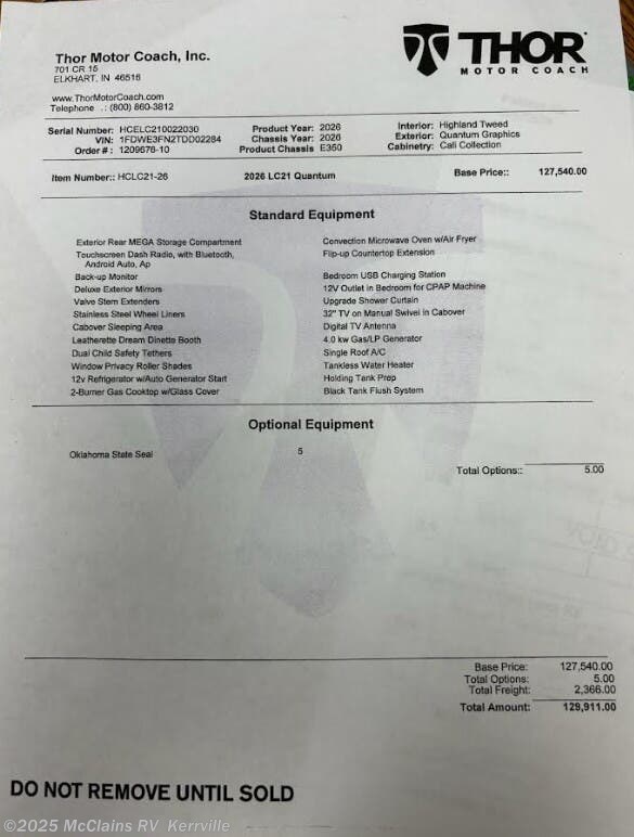 Request More Info on this 2026 Thor Motor Coach Quantum LC21 Offered for sale by McClains RV