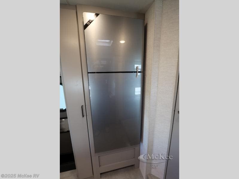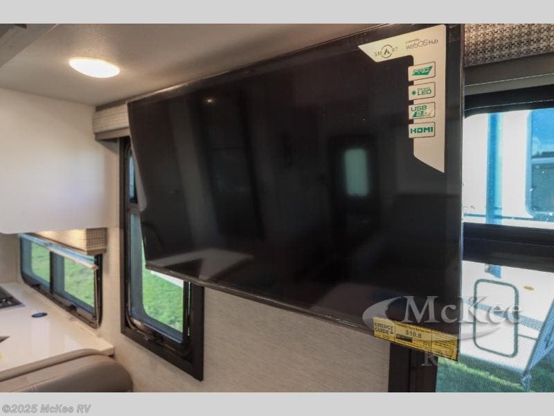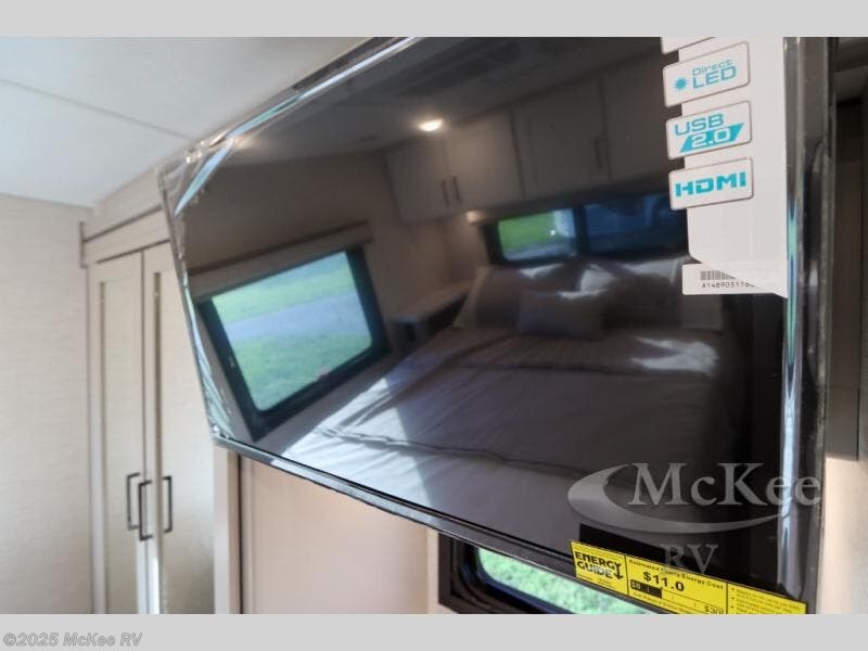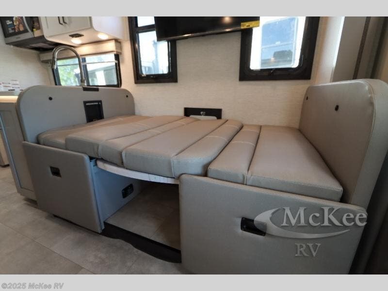 See the world on the open road with your family in this coach! Whether you travel while working, for enjoyment or both, the full-wall slide offers a spacious kitchen and living area as well as a rear bedroom. You can sleep on a queen bed and watch the 32" Smart TV before falling asleep, and the double entry bath allows easy access at night for you and the kiddos in the bunk beds in the hallway. The kitchen provides a 12V refrigerator next to the pantry for convenience and a two-burner gas cooktop with a single induction cooktop, a convection microwave, plus a stainless steel sink. Everyone can dine at the Dream dinette, the jack-knife sofa or outside under the awning. There is more to enjoy such as the cab overhead bunk with a skylight, or enjoy watching the exterior 32" TV while enjoying the weather.