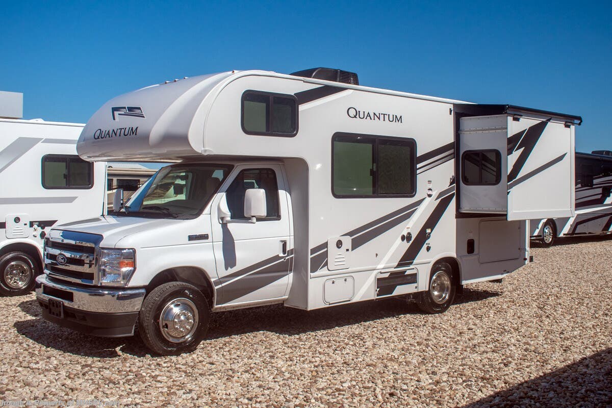 MSRP $138,446. New 2026 Thor Motor Coach Quantum LZ22 Class C RV is approximately 24 feet 1 inches in length with a Ford chassis. More features include the SmoothTECH Suspension, touchscreen dash radio, back-up monitor, stainless steel wheel liners, solid surface kitchen counter-top, premium window privacy shades. The Quantum Class C RV has an incredible list of standard features including one-piece fiberglass front cap, one-piece upper rear cap, rotocast storage compartments, back-up monitor, Apple CarPlay/Android Auto, Keyless entry key fob, full extension soft close metal ball-bearing drawer guides, window privacy shades, cab-over sleeping area with cup holders and much more. Shop hundreds of class C gas RVs at 1 location! Choose from Fleetwood Altitude - Gulf Stream BT Cruiser - Thor Chateau - Four Winds - Geneva and Quantum - Entegra Coach Odyssey Odyssey SE and Esteem - East to West Entrada - Forest River Forester - Forester LE - Nexus Phantom - Viper and much more. We also sell quality pre-owned models such as Jayco Greyhawk – Redhawk - Redhawk SE - Thor Magnitude - Winnebago Spirit - and Minnie Winnie - Coachmen Freelander and Leprechaun - Forest River Sunseeker Classic - Sunseeker LE – Solera - Holiday Rambler Incline and much more. Visit for our complete line-up and the sale prices that have made us the #1 volume selling motor home dealership in the world 12 years in a row! For additional details on this unit and our entire inventory including brochures, window sticker, videos, photos, reviews & testimonials as well as additional information about Motor Home Specialist and our manufacturers please visit us at or call 800-335-6054. At Motor Home Specialist, we DO NOT charge any prep or orientation fees like you will find at other dealerships. All sale prices include a 200-point inspection, interior & exterior wash, detail service and a fully automated high-pressure rain booth test and coach wash that is a standout service unlike that of any other in the industry. You will also receive a thorough coach orientation with an MHSRV technician, a night stay in our delivery park featuring landscaped and covered pads with full hook-ups and much more! Read Thousands upon Thousands of 5-Star Reviews at and See What They Had to Say About Their Experience at Motor Home Specialist. WHY PAY MORE? WHY SETTLE FOR LESS?