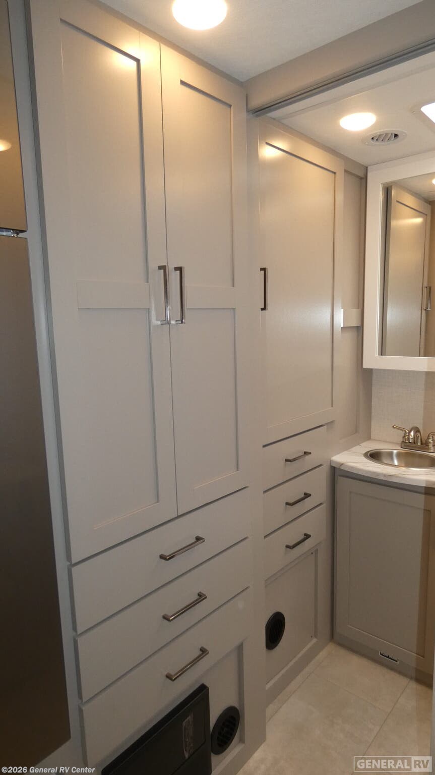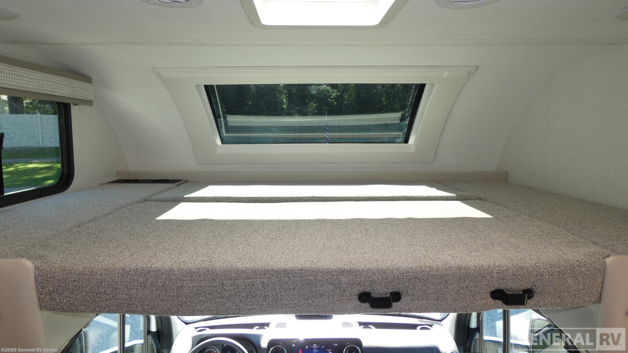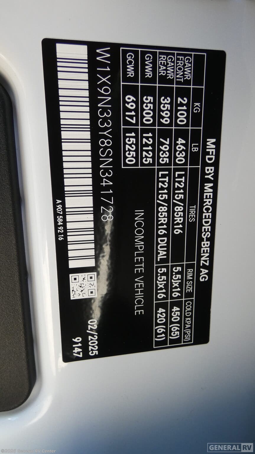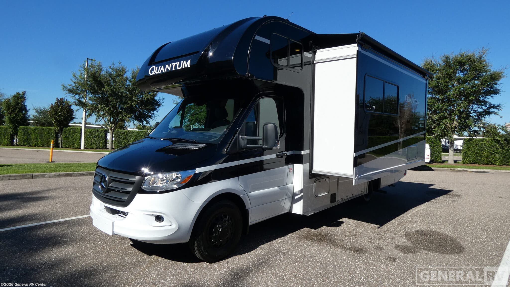 Step into the 2026 Thor Motor Coach Quantum Sprinter MB24, where luxury meets functionality in a compact yet spacious design. This RV is built on the robust Mercedes-Benz Sprinter 4500 chassis, powered by a reliable I4 diesel engine, offering you 211 horsepower and 332 torque for a smooth and efficient ride. With a length of just over 25 feet, this motorhome is perfect for both quick getaways and extended adventures, providing a cozy retreat with its thoughtfully designed interior. Inside, you'll find a versatile floorplan that maximizes every inch of space. The center kitchen is a culinary delight, equipped with a mid-size electric refrigerator and a three-burner cooktop, perfect for preparing meals on the go. The 67" sofa and 70" dream dinette with footrests offer ample seating for relaxation or entertaining guests. At night, the queen-size Murphy bed transforms the living area into a comfortable sleeping space, complemented by a cab-over bunk and convertible sleeping area, accommodating up to six people. The rear bath features a shower with a curtain, ensuring privacy and convenience. The Quantum Sprinter MB24 also boasts a 14 ft. powered retractable awning, providing the perfect outdoor space to enjoy nature. With its impressive 5000 lbs tow capacity, you can bring along your favorite toys or additional gear. Experience the perfect blend of style, comfort, and practicality with this exceptional RV. For more details or to see it in person, visit your nearest General RV dealership.