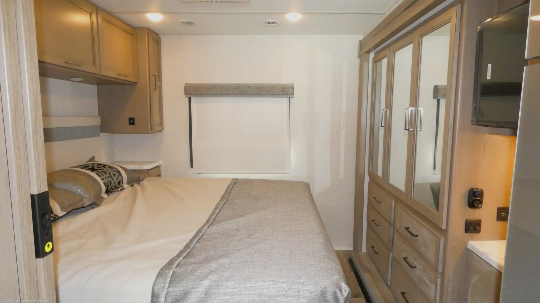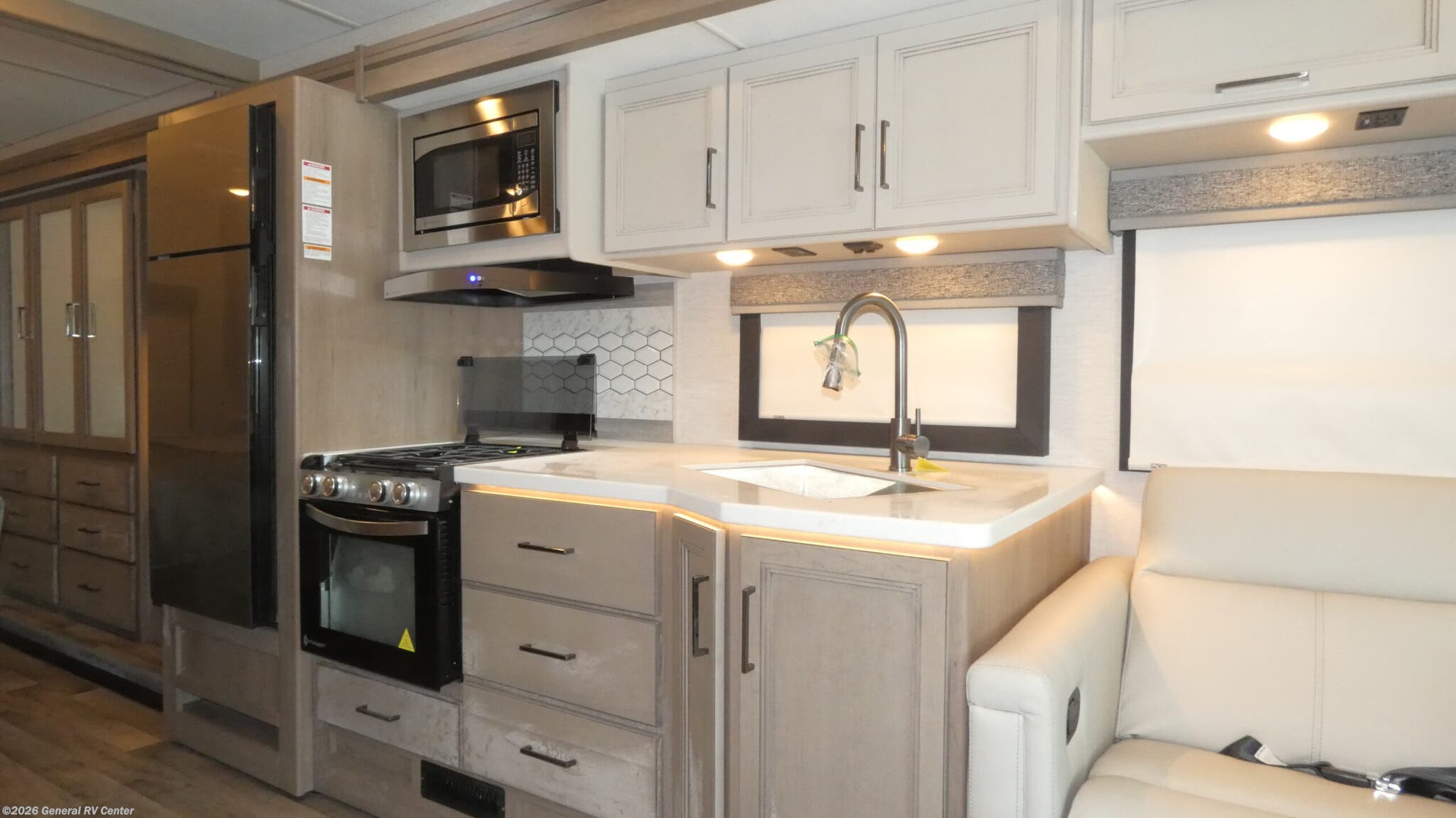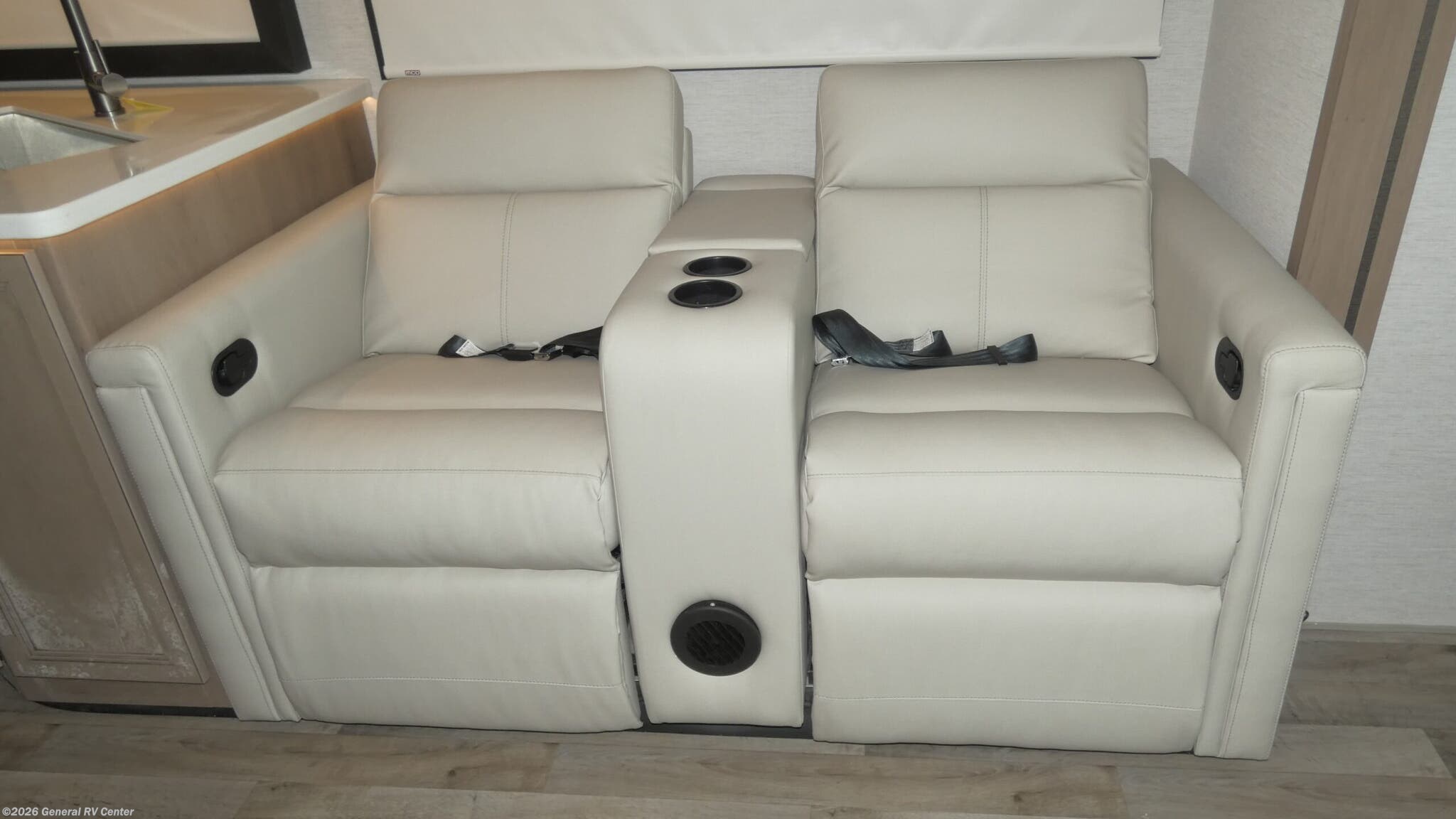 Experience the open road like never before with the 2026 Thor Motor Coach Resonate 29D. This RV is designed to be your luxurious home away from home, offering a spacious and inviting interior that comfortably sleeps up to six. The king-sized bed ensures restful nights, while the additional bunk provides extra sleeping space for family or guests. With a 68-inch dream dinette and a jack-knife sofa, relaxation and entertainment are at the forefront of this design, perfect for unwinding after a day of adventure. The Resonate 29D is equipped with modern amenities to enhance your travel experience. Enjoy the convenience of a 40-inch LED Smart TV in the living room and a 32-inch TV in the bedroom, ensuring entertainment is always at your fingertips. The exterior TV and kitchen extend your living space outdoors, making it ideal for tailgating or enjoying the great outdoors. The 19-foot power awning with integrated LED lighting creates the perfect ambiance for evening gatherings. Powered by a robust 7.3L V8 engine on a Ford F-53 chassis, this motorhome delivers both power and comfort, making every journey smooth and enjoyable. For more information, visit your nearest General RV Dealership Location.