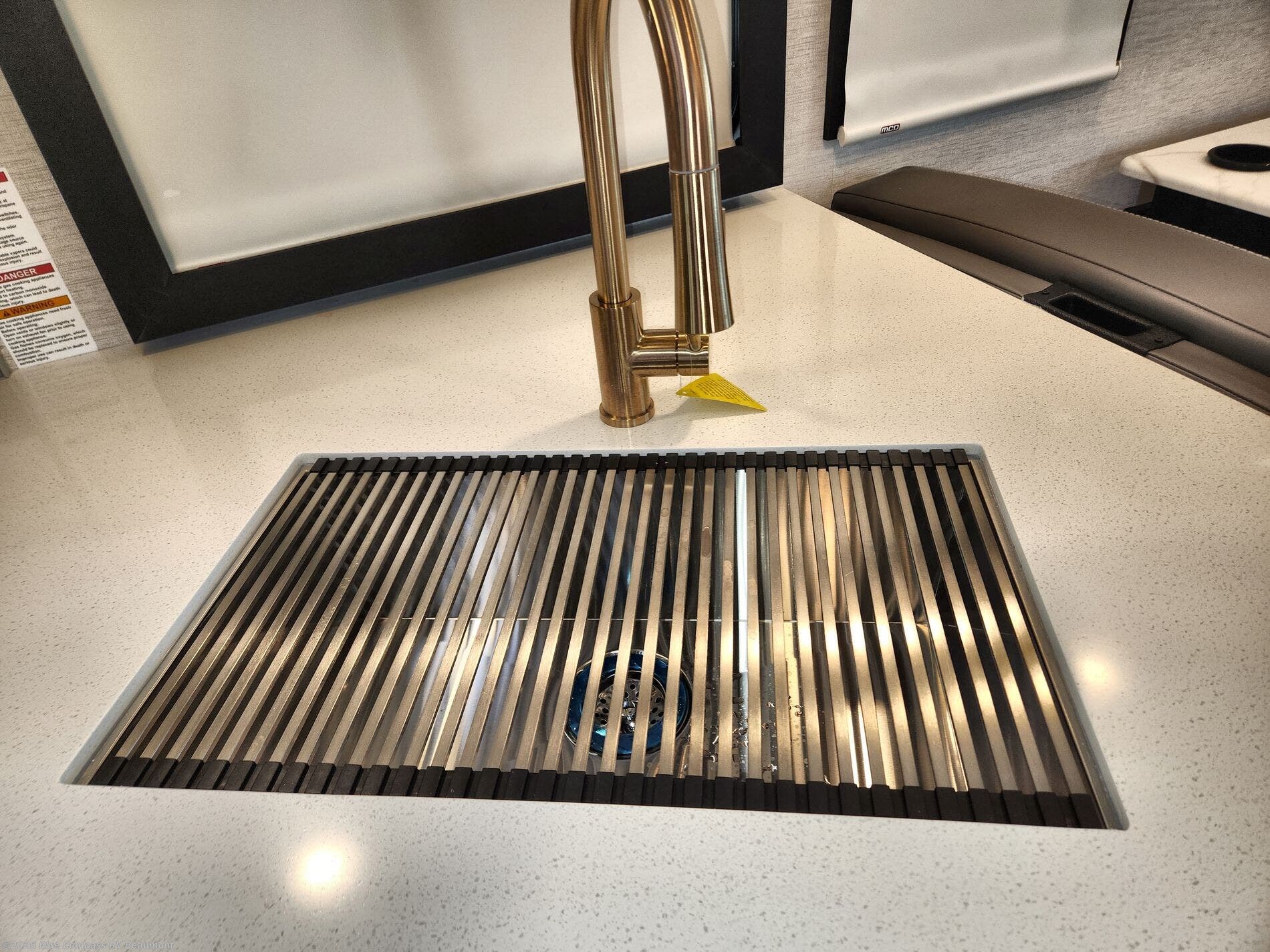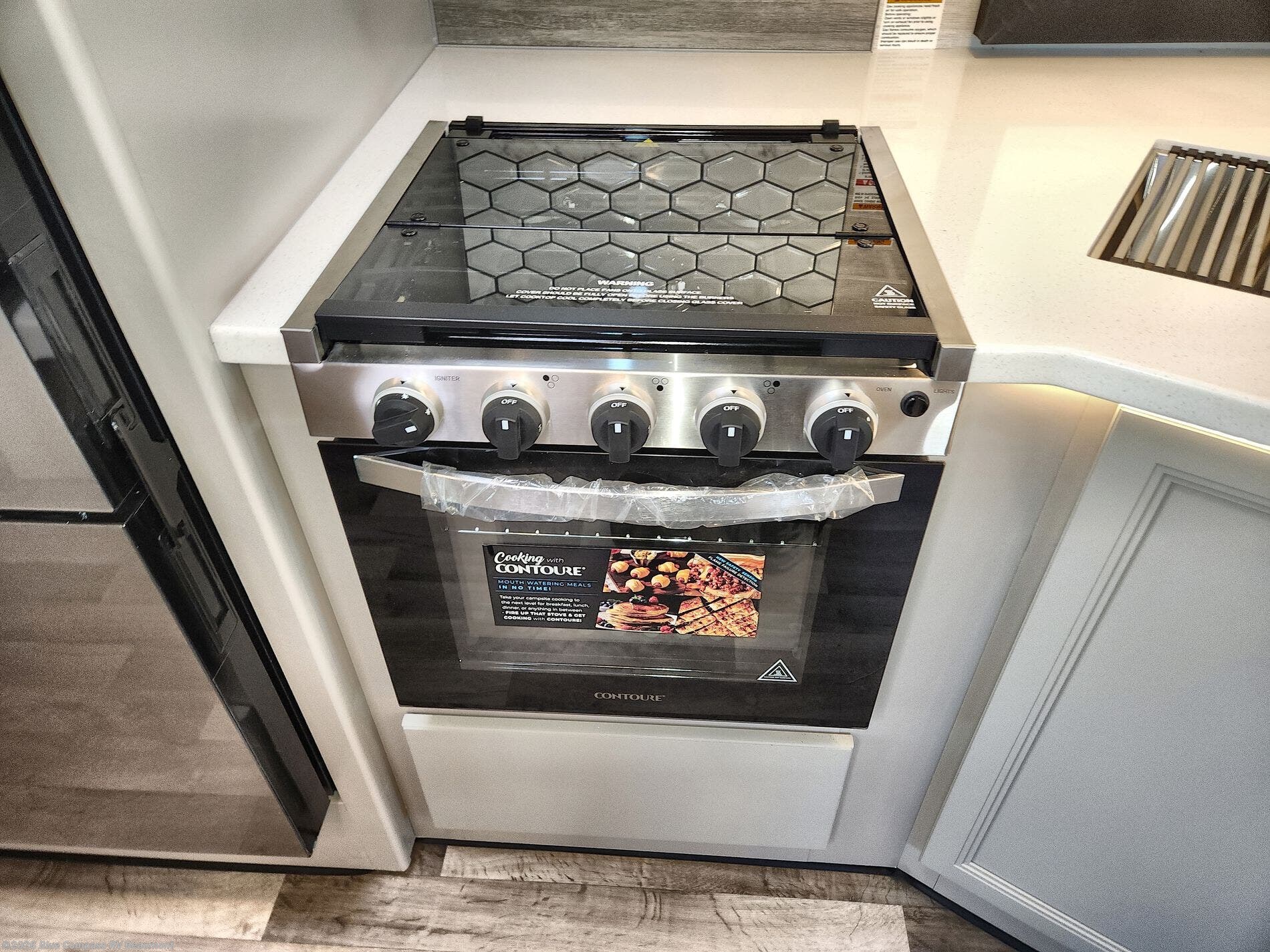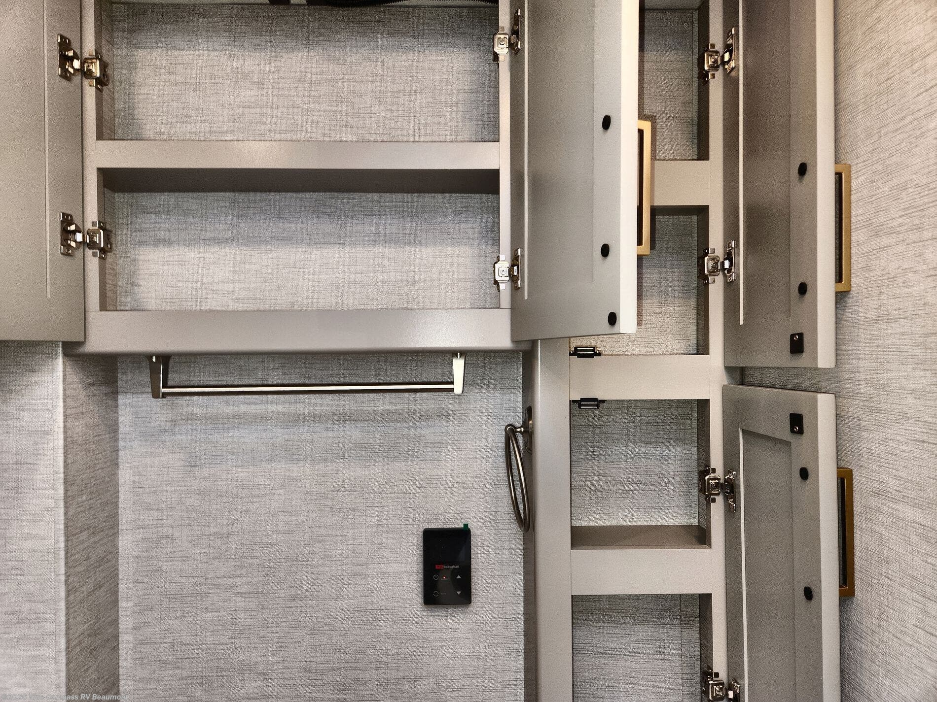 Load up your bags and pack up the family for fun trips across the states in this double slide out coach! Your crew can relax under the power awning when you get to the campsite, and there is an exterior kitchen and an exterior TV for the ultimate outdoor living space. If the weather is raining on your parade, just head inside to relax on the jack-knife sofa or play a game at the Dream Dinette! There is a 40" LED Smart TV here to watch a show, and the little ones can take a rest on the drop-down overhead bunk. Once you've worked up an appetite, prepare a meal on the three burner cooktop, or use the microwave oven. You'll also find a 12V DC double door refrigerator here and a pantry for snacks and canned goods. And don't overlook the rear private bedroom with a king bed slide out, a spacious closet and a dresser, plus a 32" bedroom LED Smart TV for movies in bed!