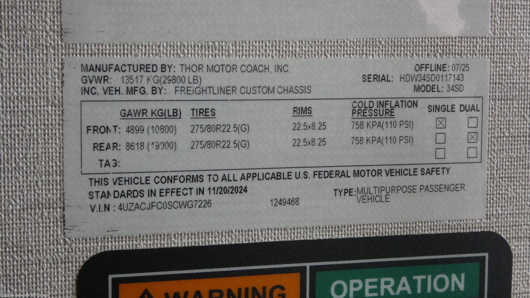 Request More Info on this 2026 Thor Motor Coach Riviera 34SD Offered for sale by General RV Center