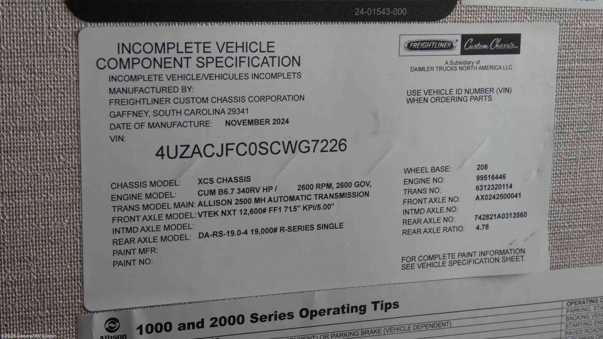 - VIN4UZACJFC0SCWG7226