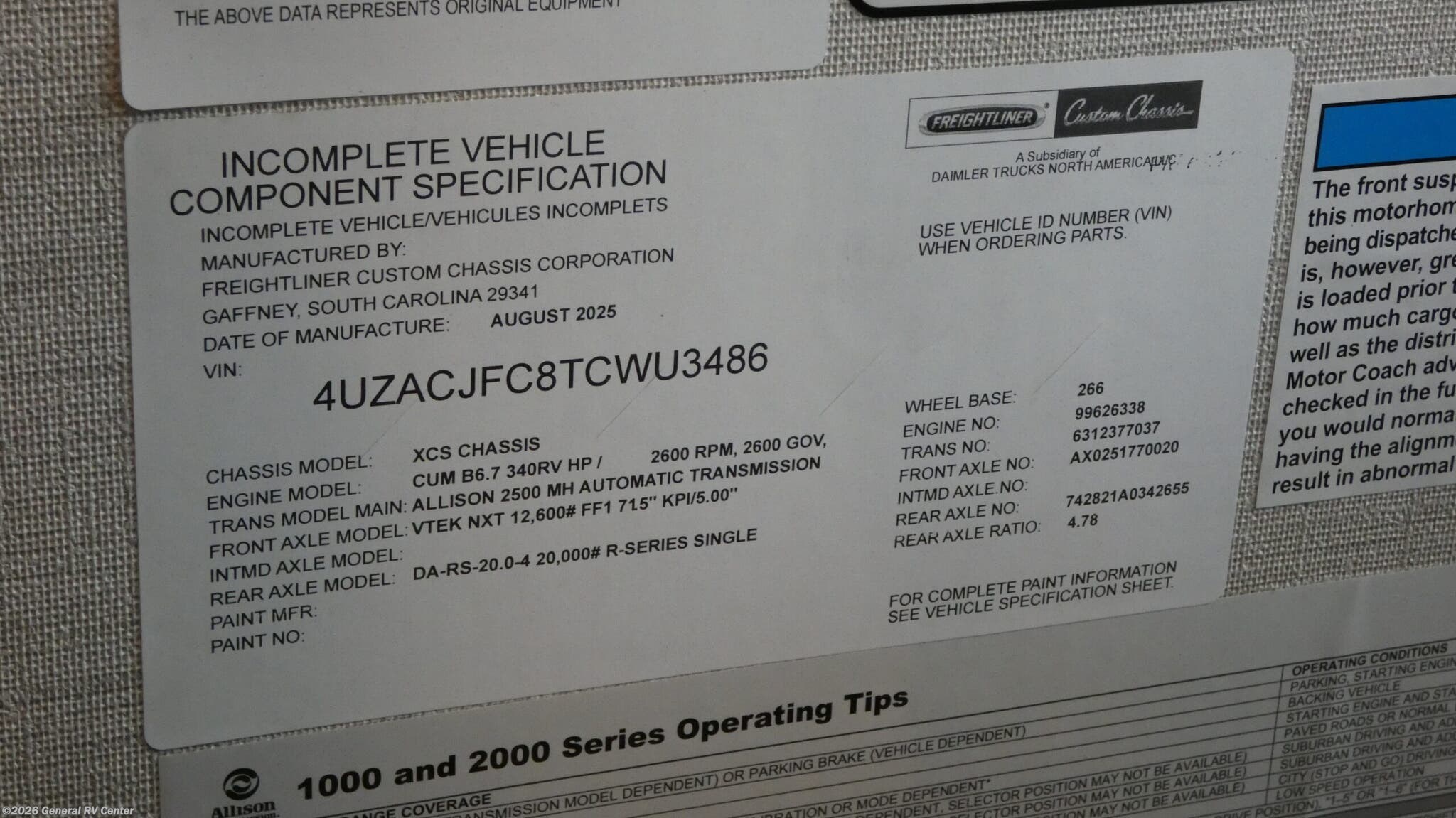 - VIN4UZACJFC8TCWU3486
