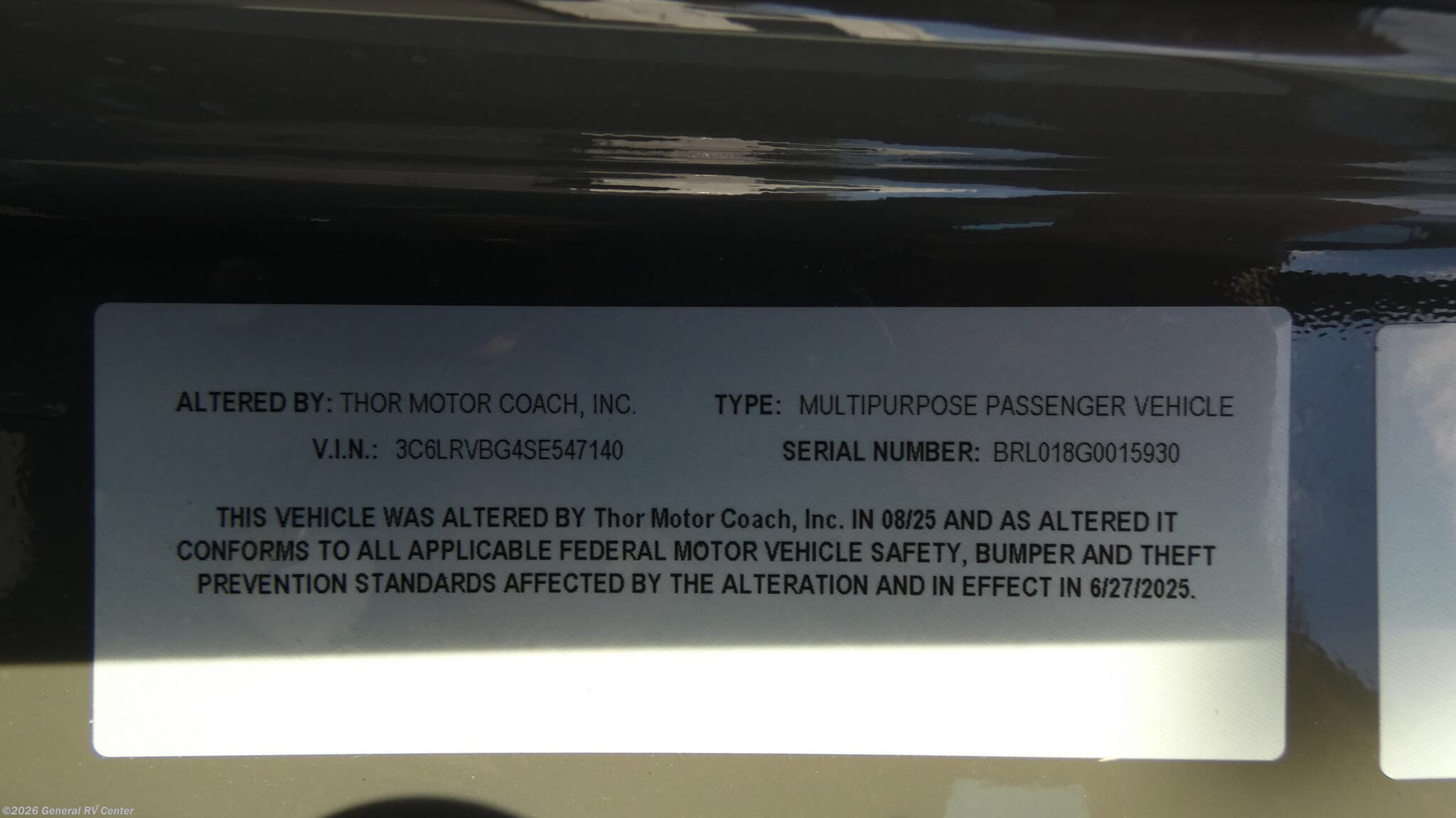 Request More Info on this 2026 Thor Motor Coach Rize 18G Offered for sale by General RV Center