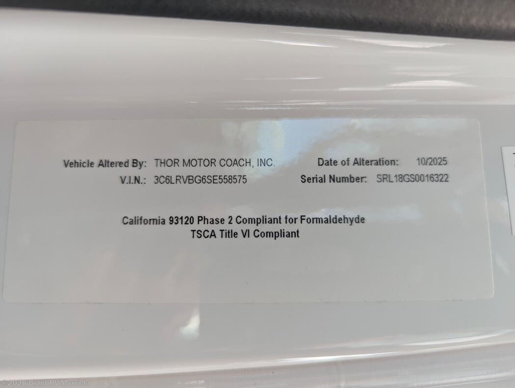 Request More Info on this 2026 Thor Motor Coach Rize 18GS Offered for sale by Giant RV