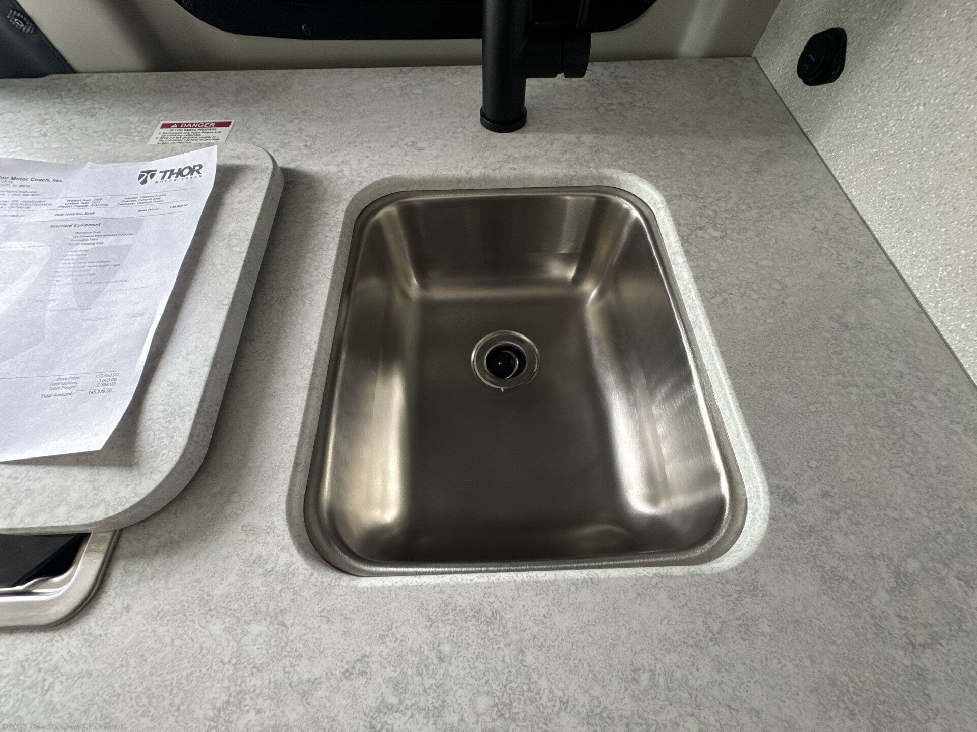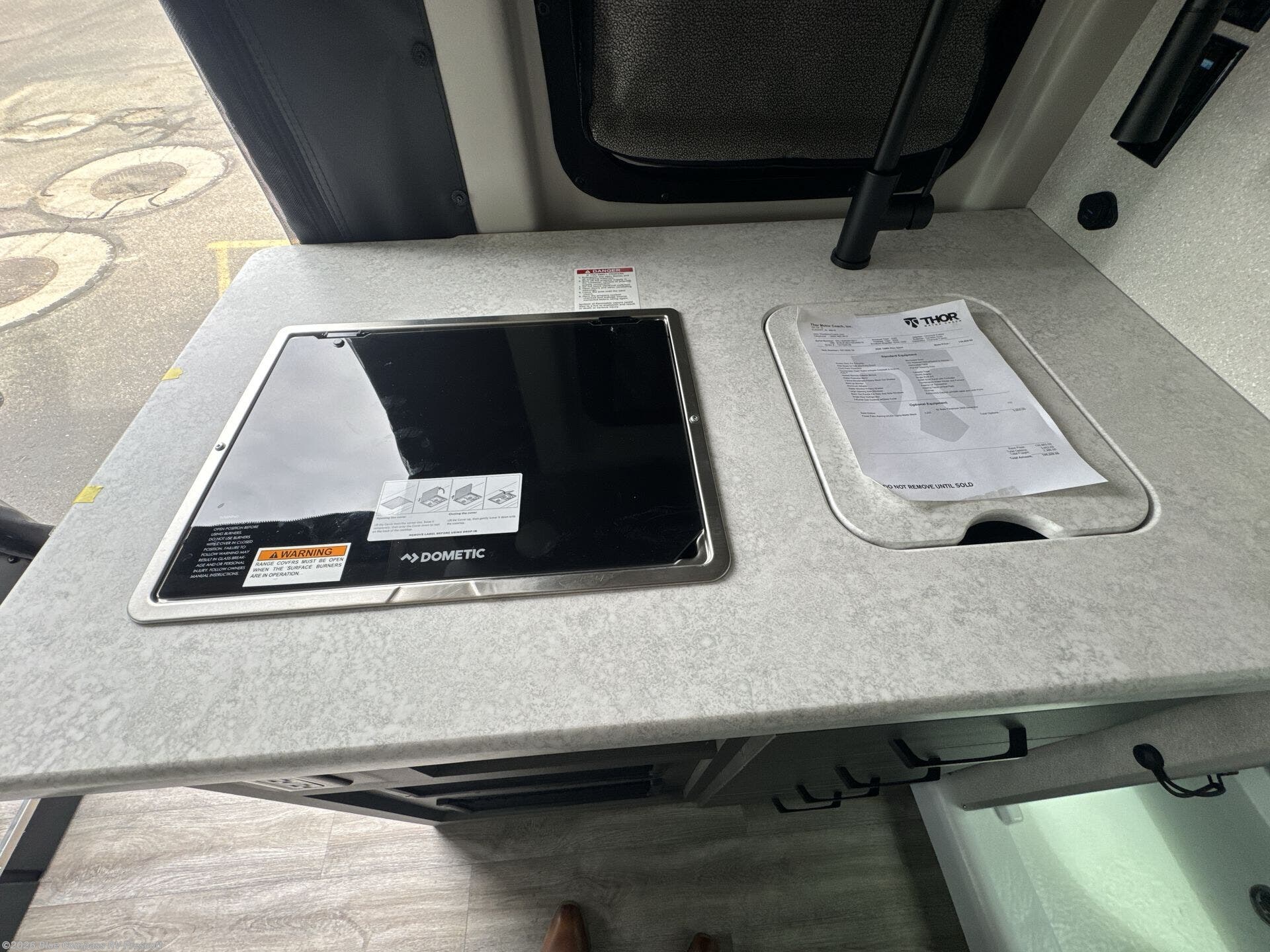 The Rize Class B gas motorhome by Thor Motor Coach allows you to experience the camping lifestyle in a compact RV packed with convenient features. There is a 3.6L Pentastar V6 engine and 276 HP to power your excursions, and the outdoor enthusiast will love the exterior sprayer. Each model includes residential vinyl flooring, Welformed interior wall panels, Euro-style upper cabinet doors, and cassette shades. You'll find solid surface countertops in the kitchen and a glass protective cover and task lighting above the cooktop to easily cook meals each day. The keyless entry system adds to the convenience found throughout these models, plus there is an exterior LP connection if you want to hook up your own grill!