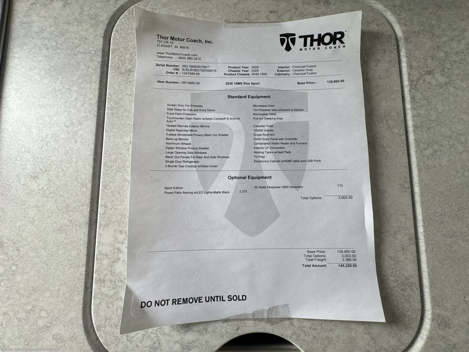 Request More Info on this 2026 Thor Motor Coach Rize 18M Offered for sale by Blue Compass RV Prescott