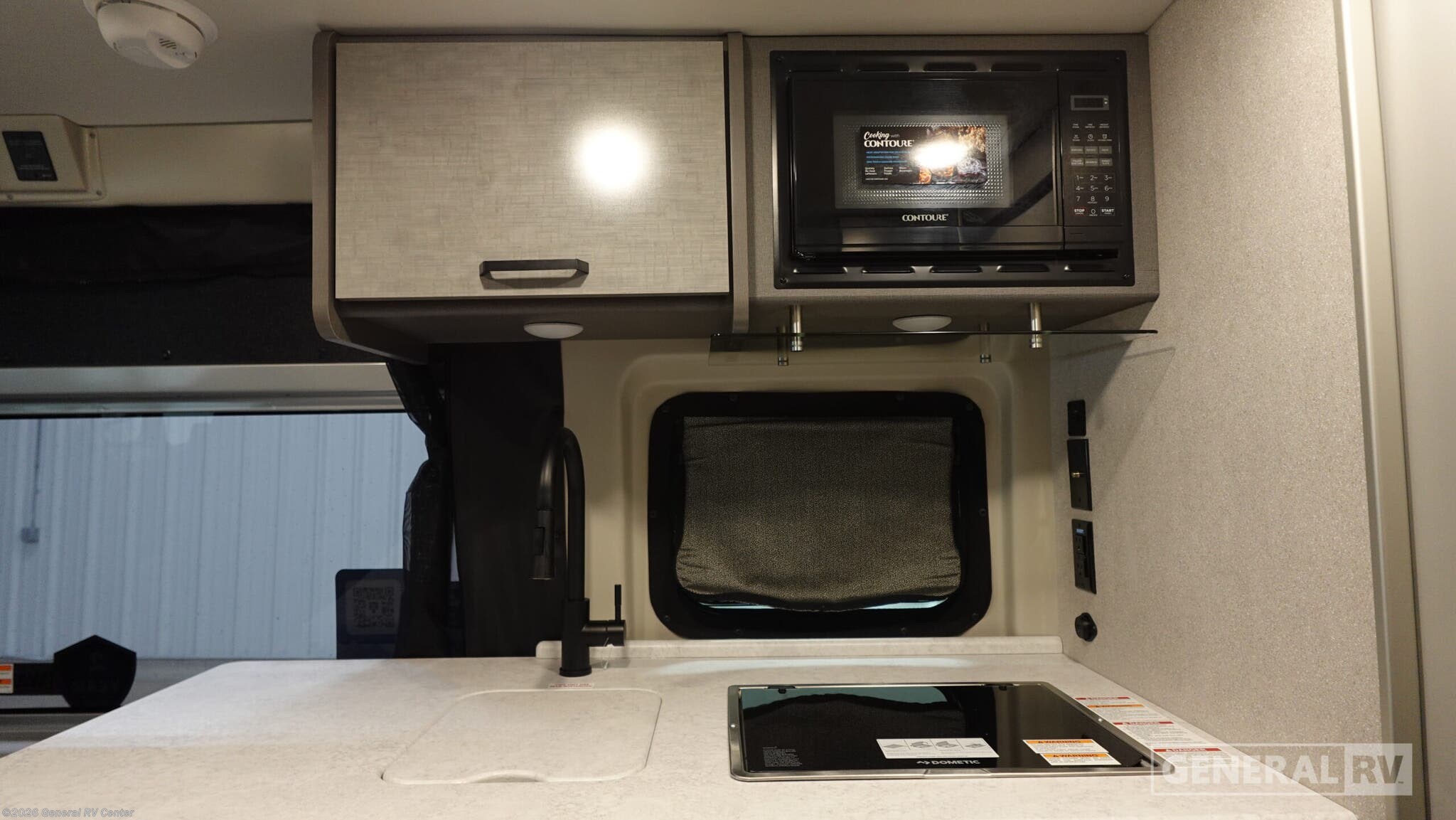 **Thor Motor Coach Rize Sport Class B gas motorhome 18M highlights:** * Rear Wet Bath * Factory Cover Swivel Captain's Chairs * Removable Table * Microwave Oven This coach is the perfect home on wheels for all your adventures. You will have everything you need, including a wet bath with a cassette toilet and pocket doors to save space. Once you have prepared breakfast on the two-burner gas cooktop, you can dine on the sofa with a removable table. This area can then be your sleeping space at night since the sofa converts into a 72" x 47" pull-out bed. Whether you're enjoying the fresh air let in by the large opening side windows, or you're sipping on a cold drink outside, you will love everything about this coach! The Rize Sport Class B gas motorhome by Thor Motor Coach allows you to experience the camping lifestyle in a compact RV packed with convenient features. There is a 3.6L Pentastar V6 engine and 276 HP to power your excursions, and the outdoor enthusiast will love the exterior sprayer. Each model includes residential vinyl flooring, Welformed interior wall panels, and slap style cabinet doors, and cassette shades. You'll find pressed countertops in the kitchen and a glass protective cover and task lighting above the cooktop to easily cook meals each day. The keyless entry system adds to the convenience found throughout these models, plus there is an exterior LP connection if you want to hook up your own grill!