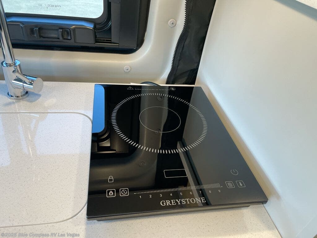 You'll love just about everything in this capable coach for two! Once you wake up on the 50" x 74 bed, you can freshen up in the wet bath that includes a cassette toilet, a deluxe curtain, and a power bath vent with a wall switch to keep everything fresh. There is also an underbed cargo area with a locking storage compartment to keep gear secure. Head to the kitchen to prepare breakfast on the induction cooktop and microwave oven, and the milk can go back in the single door 12V electric refrigerator. This model also includes a dinette with a removable table for dining space and a 24" Smart TV to keep you entertained!