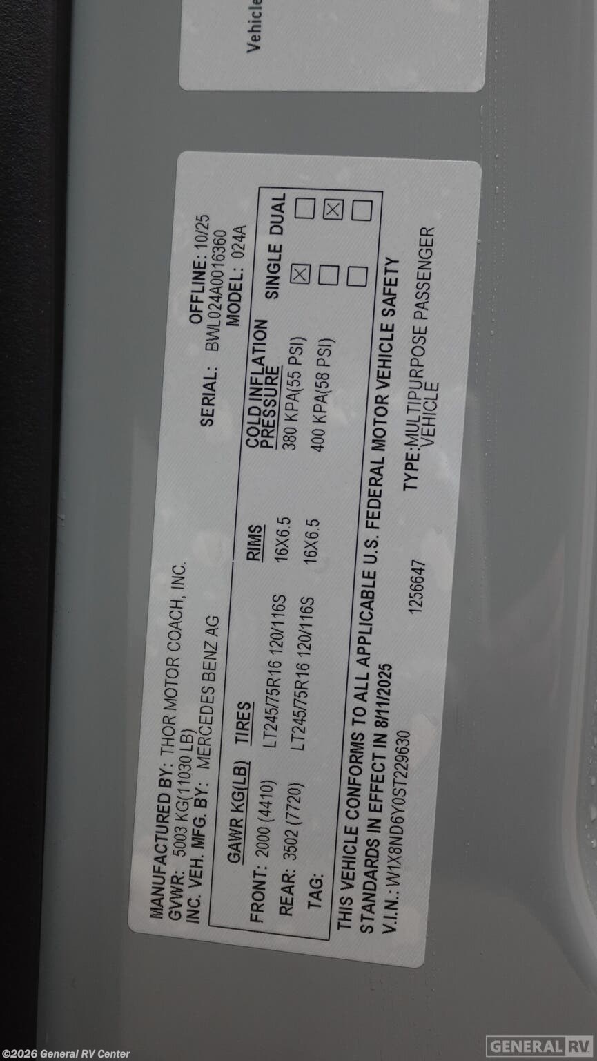 Request More Info on this 2026 Thor Motor Coach Sanctuary 24A Offered for sale by General RV Center