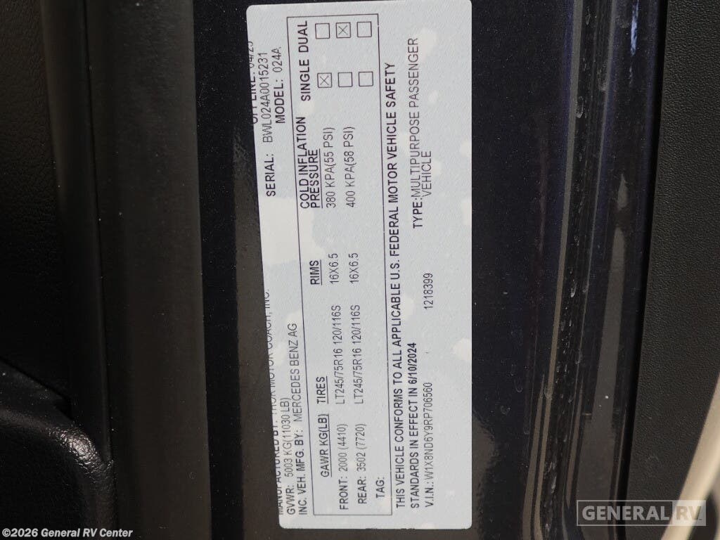 2026 Thor Motor Coach Sanctuary 24A Specifications