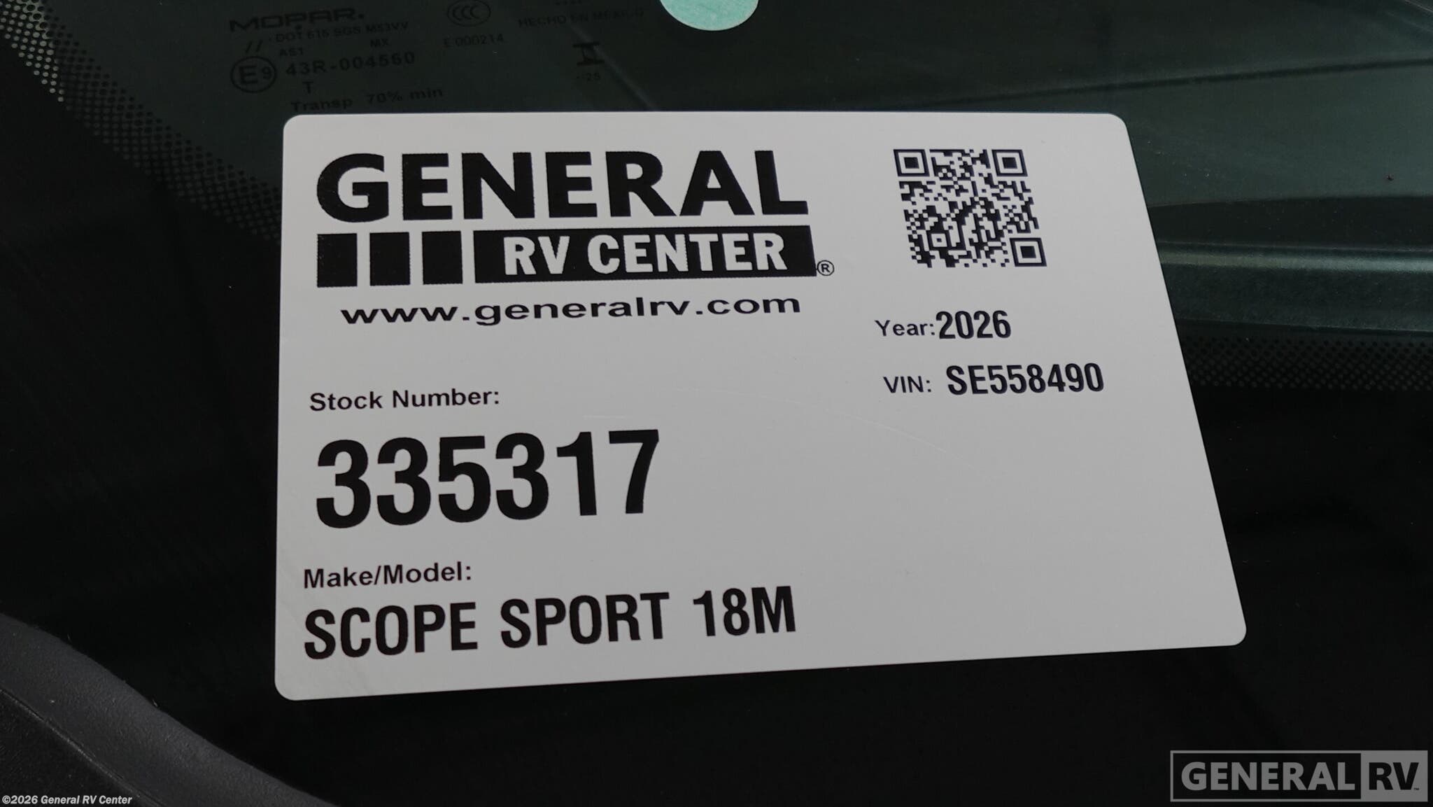 Request More Info on this 2026 Thor Motor Coach Scope Sport 18M Offered for sale by General RV Center