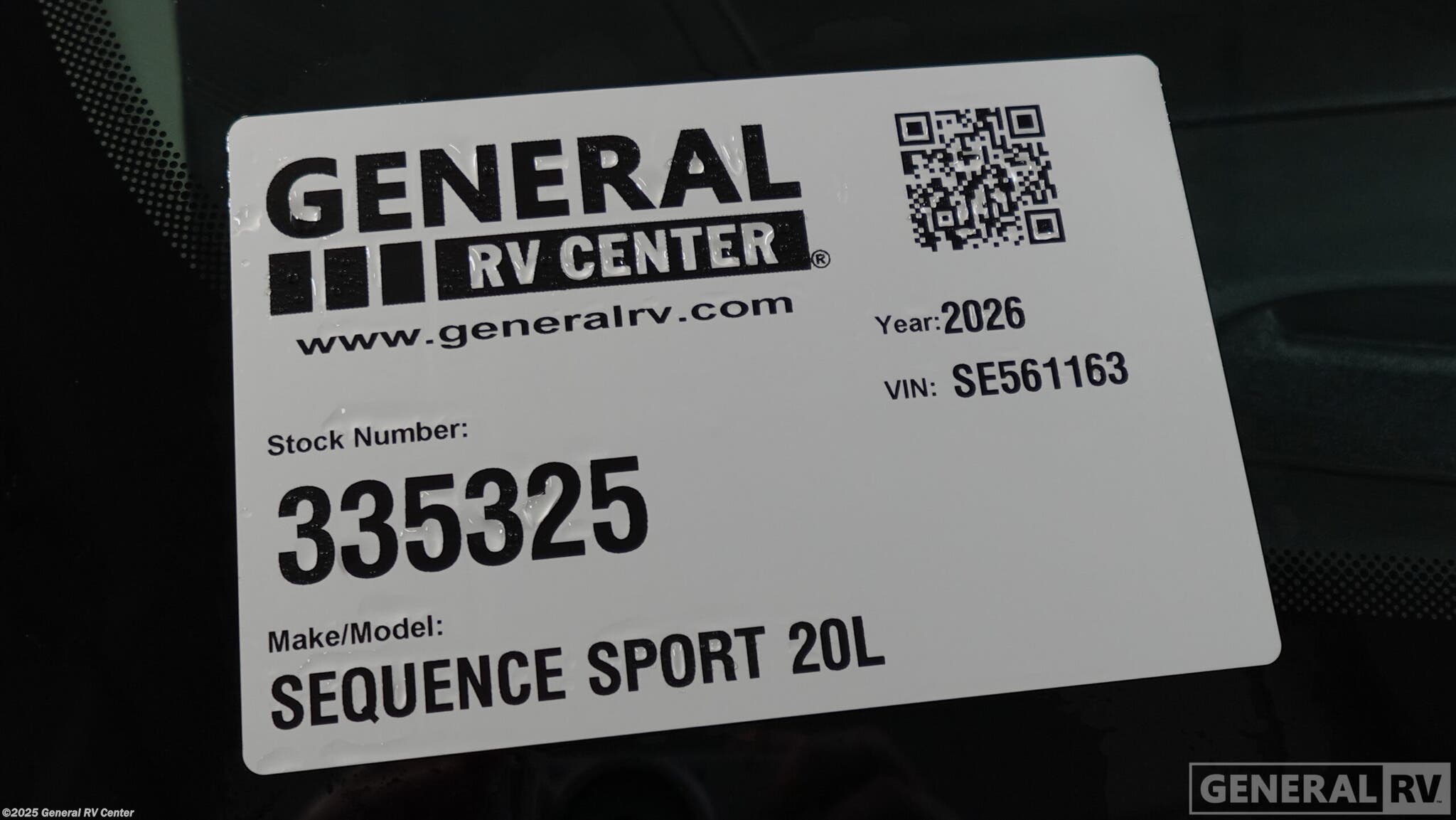 Request More Info on this 2026 Thor Motor Coach Sequence Sport 20L Offered for sale by General RV Center