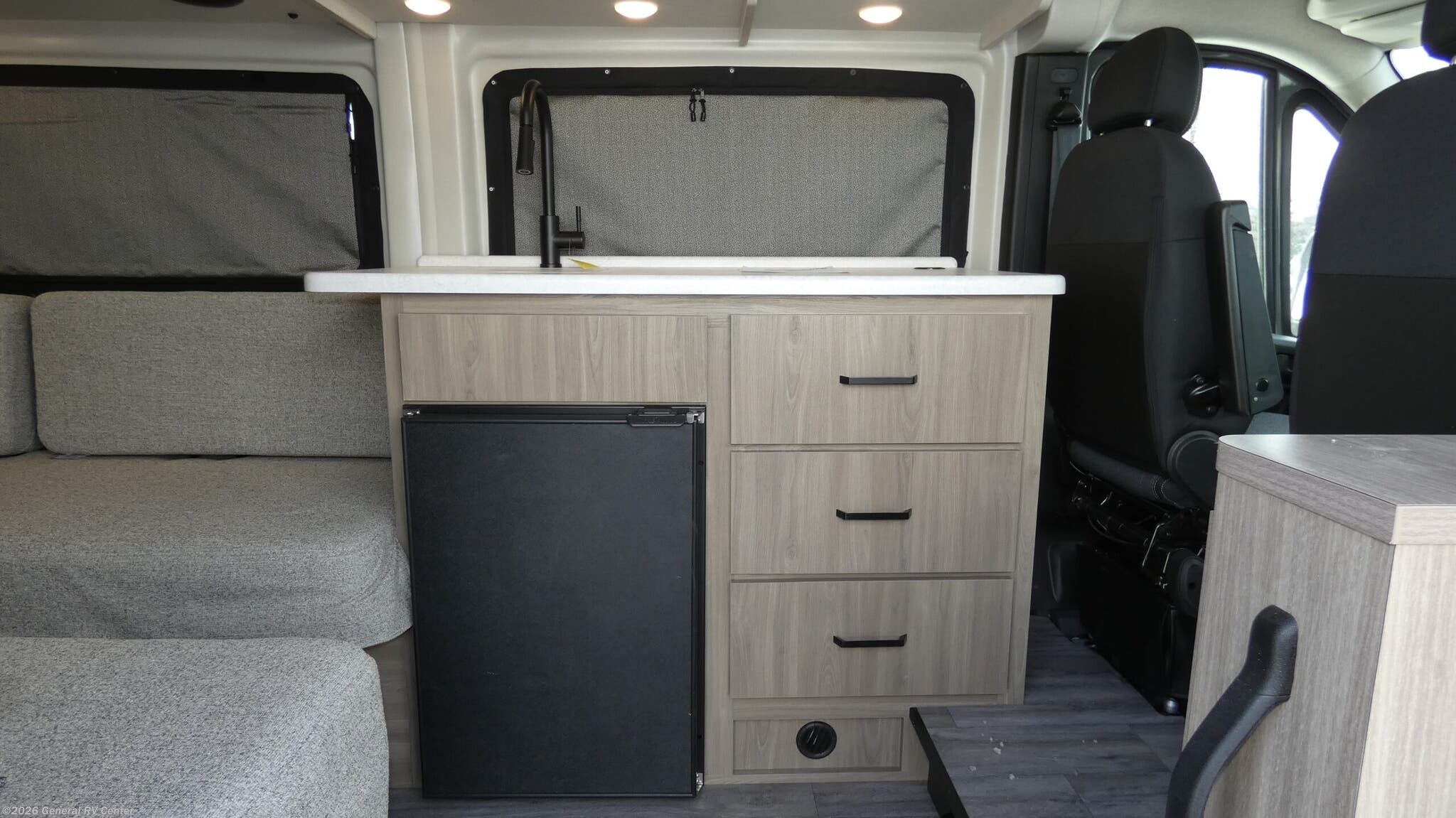 Thor Motor Coach Sequence Sport Class B gas motorhome 20L highlights: Wet Bath Keyless Entry System Opposing Sofas Flip-Up Counter Outside Shower Soft Close Drawer Guides Travel the country with your favorite person in this motorhome! You can freshen up after a long day of traveling in the rear enclosed wet bath with a power vent fan to eliminate unwanted steam and a wardrobe with drawers to store your clothes and towels. Enjoy a good night's rest on the 74" x 80" expanding sleeper sofa once converted, and there is a removable table in between to dine at. The kitchen not only has a single burner induction cooktop, single door 12V refrigerator, and convection microwave, but also a flip-up countertop for more space. There are even large opening side windows to let in some fresh air and natural lighting! Each one of these Thor Motor Coach Sequence Sport Class B gas motorhomes are built with a RAM Promaster 3500 XT window van chassis and powered by a fuel-efficient V-6 engine for an easy drive, economical explorer van! They are equipped with factory cover, swivel captains chairs, blackout zipper window shades, pressed countertops, slap style upper cabinet doors, and patio awning prep. Modern living and convenience is what you will find throughout the interiors with a premium touchscreen dash radio. Plus, there is residential vinyl flooring so you can bring your furry friend along and not worry about messes becoming stains!
