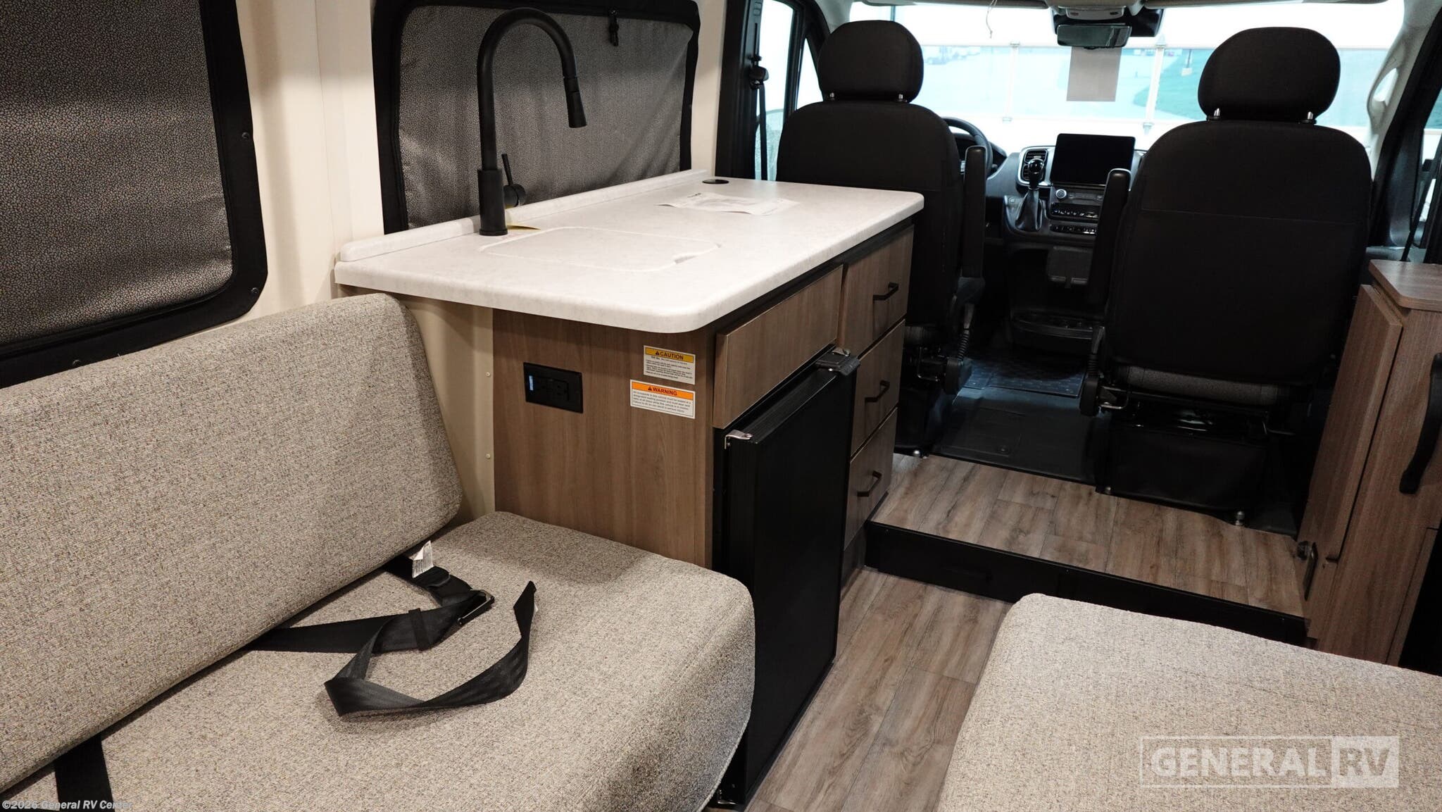Thor Motor Coach Sequence Sport Class B gas motorhome 20L highlights: Wet Bath Keyless Entry System Opposing Sofas Flip-Up Counter Outside Shower Soft Close Drawer Guides Travel the country with your favorite person in this motorhome! You can freshen up after a long day of traveling in the rear enclosed wet bath with a power vent fan to eliminate unwanted steam and a wardrobe with drawers to store your clothes and towels. Enjoy a good night's rest on the 74" x 80" expanding sleeper sofa once converted, and there is a removable table in between to dine at. The kitchen not only has a single burner induction cooktop, single door 12V refrigerator, and convection microwave, but also a flip-up countertop for more space. There are even large opening side windows to let in some fresh air and natural lighting! Each one of these Thor Motor Coach Sequence Sport Class B gas motorhomes are built with a RAM Promaster 3500 XT window van chassis and powered by a fuel-efficient V-6 engine for an easy drive, economical explorer van! They are equipped with factory cover, swivel captains chairs, blackout zipper window shades, pressed countertops, slap style upper cabinet doors, and patio awning prep. Modern living and convenience is what you will find throughout the interiors with a premium touchscreen dash radio. Plus, there is residential vinyl flooring so you can bring your furry friend along and not worry about messes becoming stains!