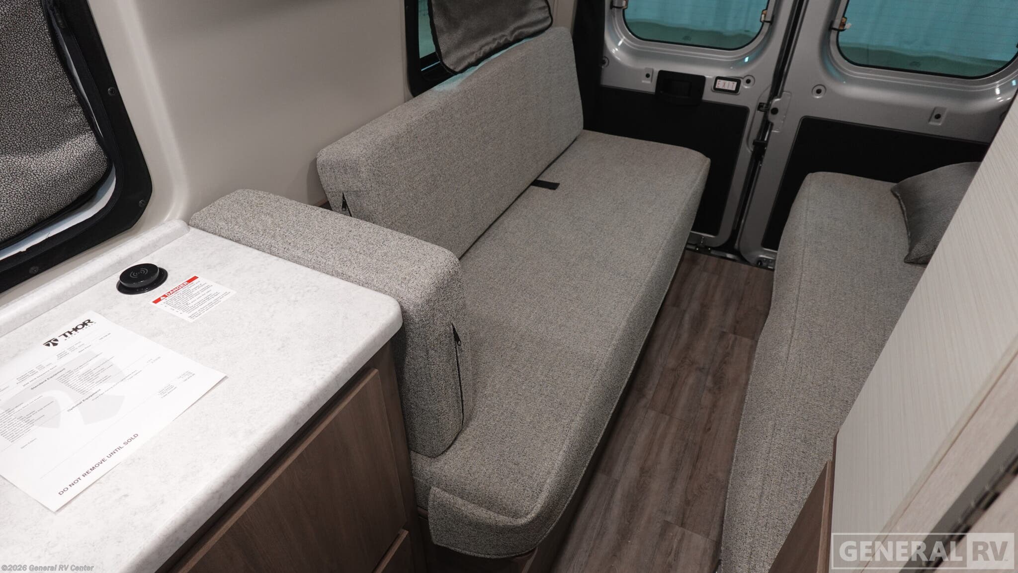 Thor Motor Coach Sequence Class B gas motorhome 20U highlights: Wet Bath Keyless Entry System Opposing Sofas Closet This is the perfect motorhome for you and your partner! The rear area features two sofas that effortlessly convert to a spacious full-width bed, measuring 72” x 66” for a restful night's sleep. A removable table provides a convenient spot for meals, work, or play, while a closet offers ample storage for your belongings. The wet bath is practical and efficient, and a portable cooktop, sink, and fridge provide all the necessary appliances to cook your favorite dishes each day. Swivel chairs add a touch of luxury, and a microwave gives quick and easy meal solutions. With its functional design and comfortable amenities, this motorhome is perfect for couples or solo travelers seeking a relaxing getaway. Each one of these Thor Motor Coach Sequence Class B gas motorhomes are built with a RAM Promaster 3500 XT window van chassis and powered by a fuel-efficient V-6 engine for an easy drive, economical explorer van! They are equipped with pressed countertops with undermount sinks add a touch of sophistication, while single composite flooring ensures durability and ease of maintenance. Modern living and convenience is what you will find throughout the interiors with a premium touchscreen dash radio. Plus, there is residential vinyl flooring so you can bring your furry friend along and not worry about messes becoming stains!