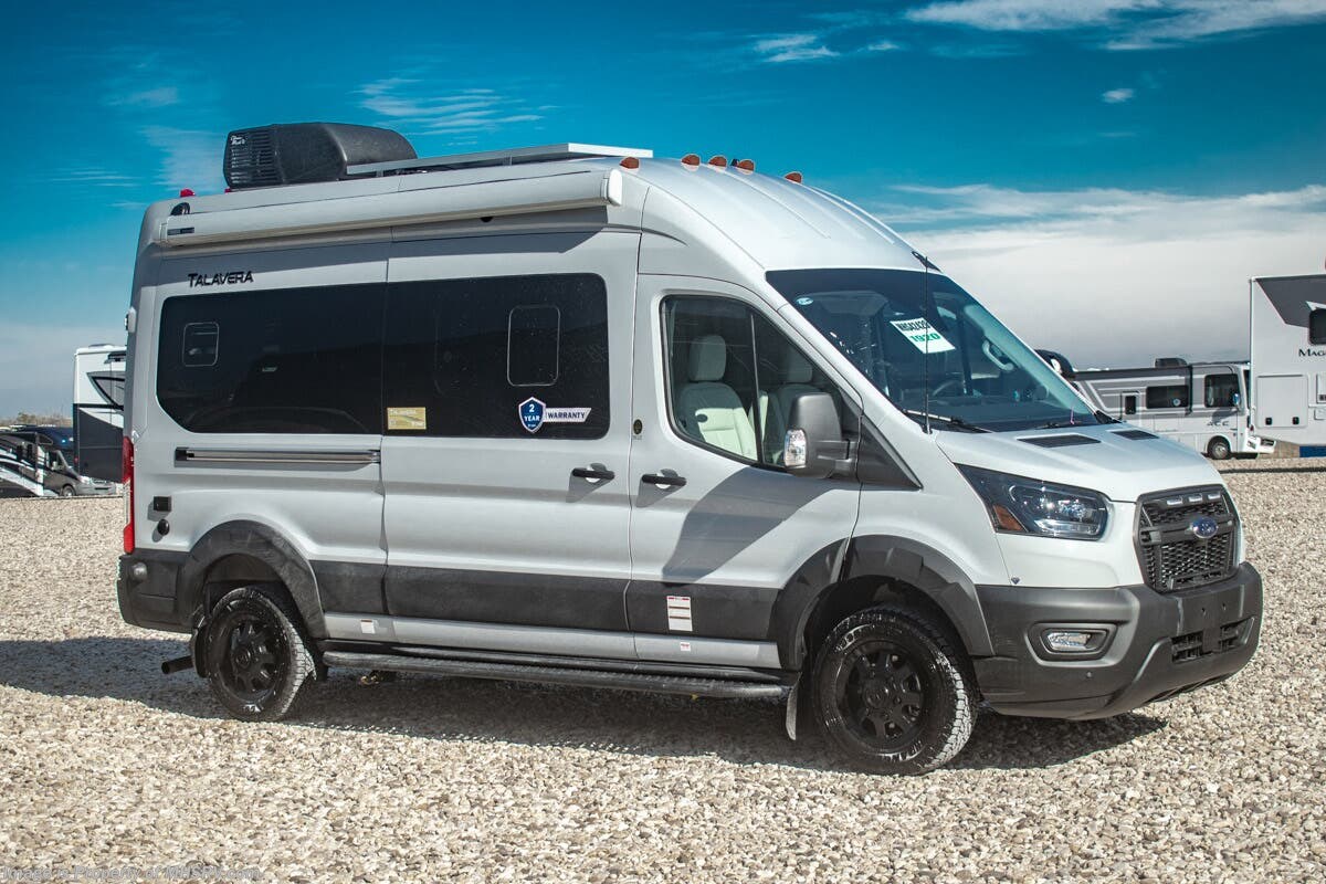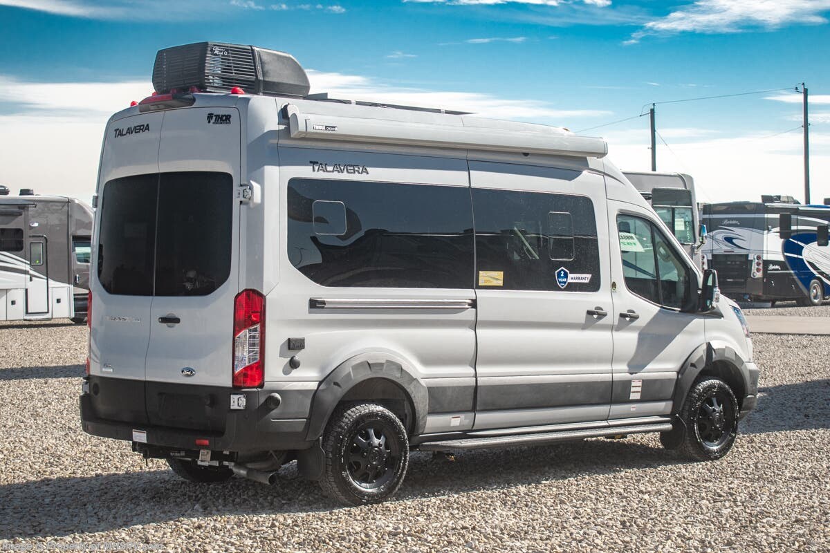- 200W Roof Mounted Solar Panel W/2nd Battery Shop hundreds of motorhomes including B Van RVs at MHSRV! Choose from Midwest Automotive Designs Patriot – Patriot Cruiser – Forest River OGV V RV – V Cruise – Thor Motor Coach Tranquility – Entegra Coach Launch and more. We also buy and sell quality pre-owned models such as Airstream Interstate – Atlas – Jayco Terrain – Tiffin GH1 – Winnebago Revel – Adventure Wagon – Pleasure Way Plateau – Ascent – Roadtrek – Leisure Travel Wonder – Unity - Coachmen Galleria – Thor Sanctuary and much more. Visit for our complete line-up and the sale prices that have made us the #1 volume selling motor home dealership in the world 12 years in a row! About This RV This Beautiful RV is approximately 19 feet 8 inches in length. The Thor Talavera boasts an impressive list of standard features including the Ford Transit trail chassis, 3" lift kit, 16" black alloy wheels, 30.5" Goodyear all-terrain tires, integrated marker lamps, splash guards w/ fender cladding, All-Wheel Drive, Power patio awning, rock slider-style steps for cab & entry doors, blind spot assistance, adaptive cruise control, swivel captain’s chairs, ball bearing drawer guides, fold-out exterior table, solid surface kitchen countertops, cassette toilet, heated holding tanks, solar and much more. About Us For more details on this unit, our full inventory, brochures, window stickers, videos, photos, and customer reviews, visit or call 800-335-6054 for the Texas location or 334-288-0331 for our Alabama location. At Motor Home Specialist, we never charge prep or orientation fees. Every new RV sale includes a multi-point inspection, full interior and exterior detail. At our Texas location we also offer a high-pressure rain booth test—an exclusive service in the industry. You'll also receive a comprehensive coach orientation with an MHSRV technician and a complimentary night in our delivery park with full hook-ups at our Texas Location. --Why Pay More? Why Settle for Less?—