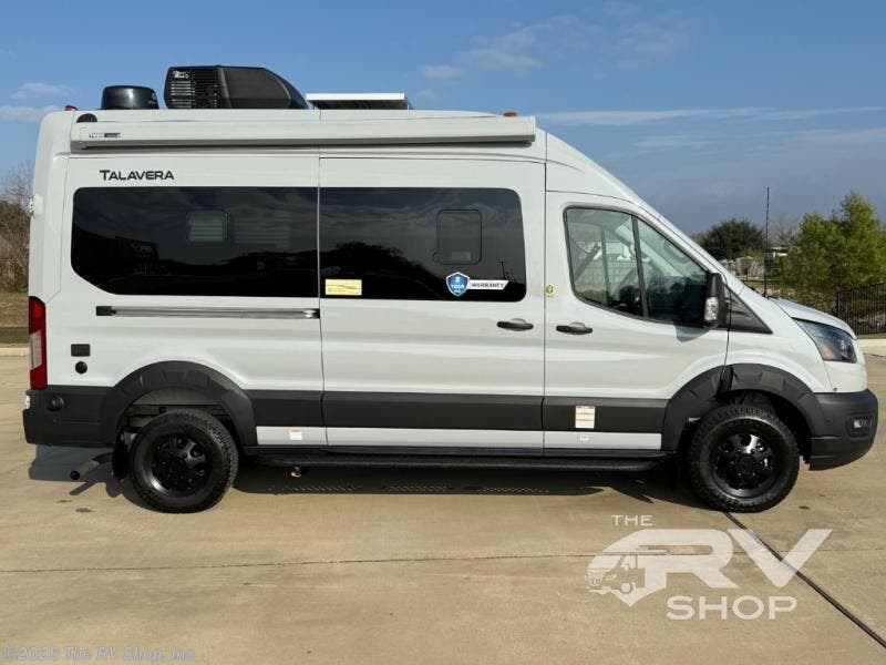 Each Thor Motor Coach Talavera Class B gas motorhome is the ultimate choice for those looking for outdoor adventures. The Ford Transit Trailâ„¢ AWD chassis with a 3" body lift, wider track, black alloy wheels and all-terrain tires will hold up through every excursion and lets you go farther into the great outdoors. The upgraded Transit Trail grille and wheel arch cladding give the exterior a rugged, purposeful look. Stay safe on the road with Transit safety features including blind spot assist, a high-resolution digital camera, reverse sensing system, side sensing system and adaptive cruise control. Inside, residential vinyl flooring is easy to clean, and the large opening side windows help bring in fresh air and natural sunlight. Come choose your favorite one today!