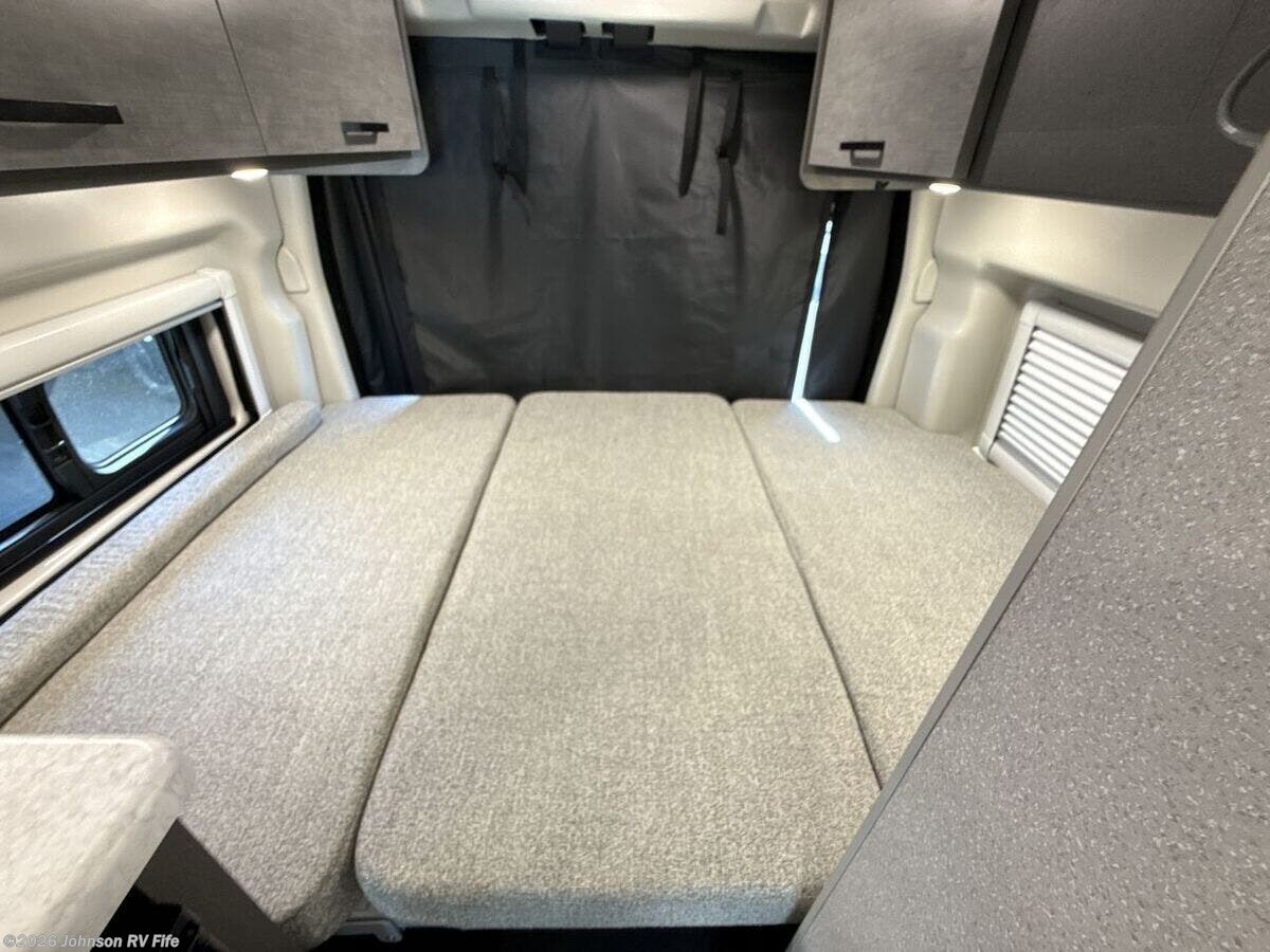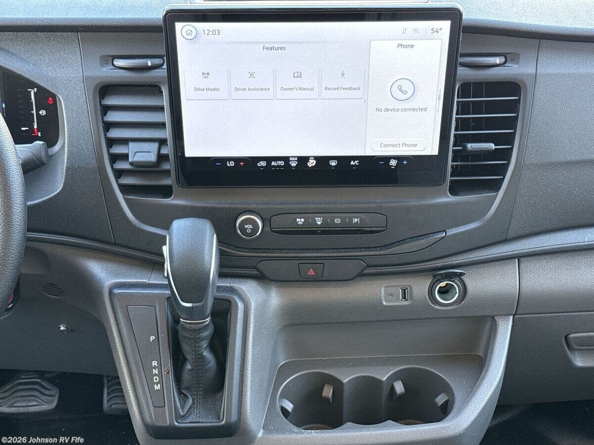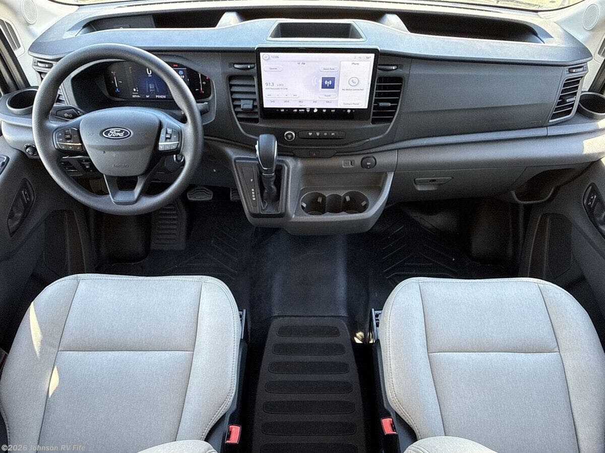 Introducing the 2026 Thor Motor Coach Talavera Transit Trail AWD, a versatile and modern Class B RV designed for both adventure and comfort. Built on a robust Ford Transit Trail AWD chassis, this vehicle is equipped to handle various terrains with ease while offering luxurious amenities for an enjoyable travel experience. Performance and Chassis: - Ford Transit Trail AWD chassis - 148-inch wheelbase - 3-inch body lift - 2.75-inch increased track width - 3.5L V6 gas engine with 310 HP and 400 lb-ft of torque - Black alloy wheels and all-terrain tires - 6000# hitch with 7-pin connector Safety and Convenience Features: - Adaptive cruise control - Blind Spot Assist - High-resolution digital camera - Lane keeping aid and reverse sensing system - Side sensing system and wiper activating headlamps Cab Features: - Rock slider side steps - Keyless entry system with intelligent access and push-button start - Sun visors and 3-piece windshield privacy shades - Swivel leatherette captain's chairs, backup monitor, and emergency engine start switch Living Spaces: - Thule lateral arm power awning with integrated LED lighting - Sliding door with opening window and entryway screen door - Residential vinyl flooring and seamless composite floor - Soft-touch vinyl ceiling and LED lighting for ambient illumination - Window blackout panels and cassette shades for privacy - Lagun table system and lightweight cabinetry with soft-close drawer guides Dining Area: - Dinette with dual lap belts - Pressed countertops and undermount stainless steel sink - Single-handle faucet, 12v refrigerator, and single-burner induction cooktop - Microwave oven and 12v ceiling vent with switch Technology: - Firefly multiplexer wiring control system - LP CO and smoke detectors - Winegard Connect 2.0 Antenna with 4G/WiFi/Digital TV capability - USB ports and HDMI cable station - Cable TV and HS/DDS Satellite ready and Starlink prep Sleeping Arrangements: - Fold-up rear sleeping area with side flairs - Below-bed gear garage with twin beds and Zomi bed sleep system Bathroom: - Enclosed wet bath with a deluxe shower curtain and cassette toilet - Power vent with wall switch Mechanical Components: - 24.7# LP tank, 200w solar panel, and 10-amp solar charge controller - Two 100Ah Group 31 lithium batteries with battery disconnect switch - 30-amp detachable service cord and RVMP 2.8 gas generator - Automatic shoreline-to-generator transfer and 40-amp charger - 1000w pure sine inverter and 11k power-saver low-profile AC unit - Truma Combi Eco LP water heating system - Freshwater tank drain, holding tank heat pads, and gravity water fill - Sewer hose and outdoor sprayer The Thor Talavera Transit Trail AWD combines rugged capability with sophisticated features, making it ideal for both short getaways and extended adventures. Whether navigating city streets or exploring remote trails, this RV ensures a comfortable and connected journey every time.
