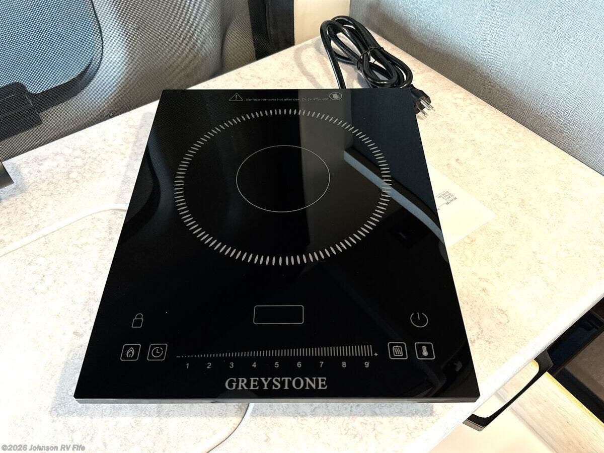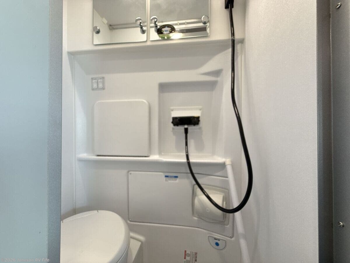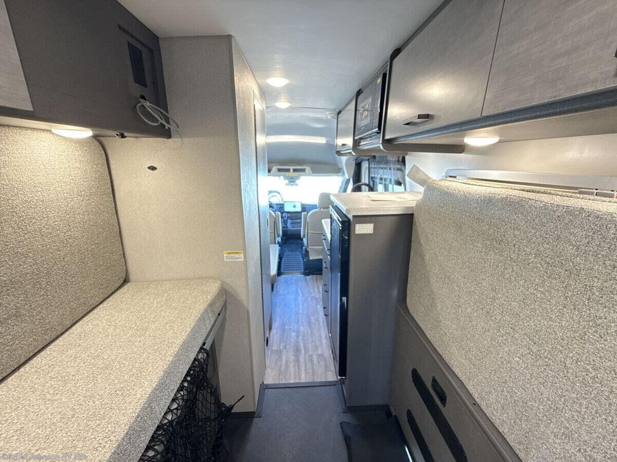 Introducing the 2026 Thor Motor Coach Talavera Transit Trail AWD, a versatile and modern Class B RV designed for both adventure and comfort. Built on a robust Ford Transit Trail AWD chassis, this vehicle is equipped to handle various terrains with ease while offering luxurious amenities for an enjoyable travel experience. Performance and Chassis: - Ford Transit Trail AWD chassis - 148-inch wheelbase - 3-inch body lift - 2.75-inch increased track width - 3.5L V6 gas engine with 310 HP and 400 lb-ft of torque - Black alloy wheels and all-terrain tires - 6000# hitch with 7-pin connector Safety and Convenience Features: - Adaptive cruise control - Blind Spot Assist - High-resolution digital camera - Lane keeping aid and reverse sensing system - Side sensing system and wiper activating headlamps Cab Features: - Rock slider side steps - Keyless entry system with intelligent access and push-button start - Sun visors and 3-piece windshield privacy shades - Swivel leatherette captain's chairs, backup monitor, and emergency engine start switch Living Spaces: - Thule lateral arm power awning with integrated LED lighting - Sliding door with opening window and entryway screen door - Residential vinyl flooring and seamless composite floor - Soft-touch vinyl ceiling and LED lighting for ambient illumination - Window blackout panels and cassette shades for privacy - Lagun table system and lightweight cabinetry with soft-close drawer guides Dining Area: - Dinette with dual lap belts - Pressed countertops and undermount stainless steel sink - Single-handle faucet, 12v refrigerator, and single-burner induction cooktop - Microwave oven and 12v ceiling vent with switch Technology: - Firefly multiplexer wiring control system - LP CO and smoke detectors - Winegard Connect 2.0 Antenna with 4G/WiFi/Digital TV capability - USB ports and HDMI cable station - Cable TV and HS/DDS Satellite ready and Starlink prep Sleeping Arrangements: - Fold-up rear sleeping area with side flairs - Below-bed gear garage with twin beds and Zomi bed sleep system Bathroom: - Enclosed wet bath with a deluxe shower curtain and cassette toilet - Power vent with wall switch Mechanical Components: - 24.7# LP tank, 200w solar panel, and 10-amp solar charge controller - Two 100Ah Group 31 lithium batteries with battery disconnect switch - 30-amp detachable service cord and RVMP 2.8 gas generator - Automatic shoreline-to-generator transfer and 40-amp charger - 1000w pure sine inverter and 11k power-saver low-profile AC unit - Truma Combi Eco LP water heating system - Freshwater tank drain, holding tank heat pads, and gravity water fill - Sewer hose and outdoor sprayer The Thor Talavera Transit Trail AWD combines rugged capability with sophisticated features, making it ideal for both short getaways and extended adventures. Whether navigating city streets or exploring remote trails, this RV ensures a comfortable and connected journey every time.