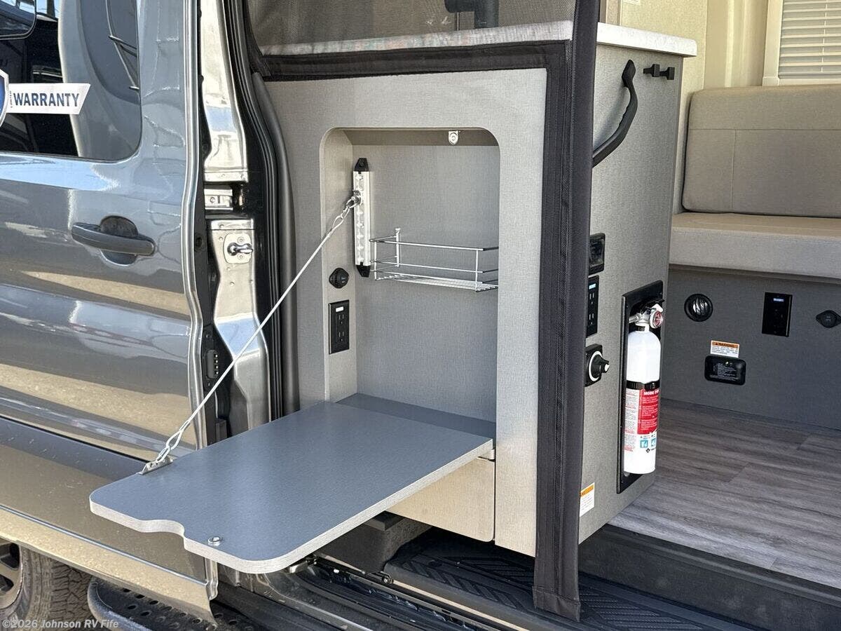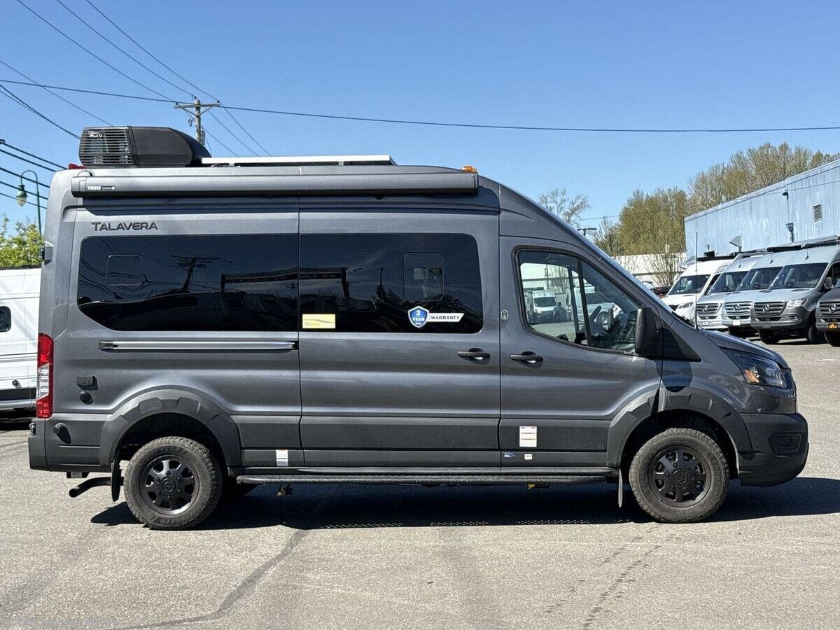 Features Include: 148-inch Wheelbase, 3-inch Body Lift, 3.5L V6 Gas Engine, Wheel Arch Cladding, Black Alloy Wheels, All-Terrain Tires, Blind Spot Assist, Lane Keeping Aid, Side Sensing System, Keyless Entry System, Sun Visors, Entryway Screen Door, LED Lighting, Opening Side Windows, Cassette Shades, Lagun Table System, Pressed Countertops, Single Handle Faucet, 12v Refrigerator, Microwave Oven, Starlink Prep, TV Prep Sleeping, Enclosed Wet Bath, Cassette Toilet, 24.7# LP Tank, 200w Solar Panel, Exterior Solar Plug, 40-Amp Charger, Gravity Water Fill, Sewer Hose