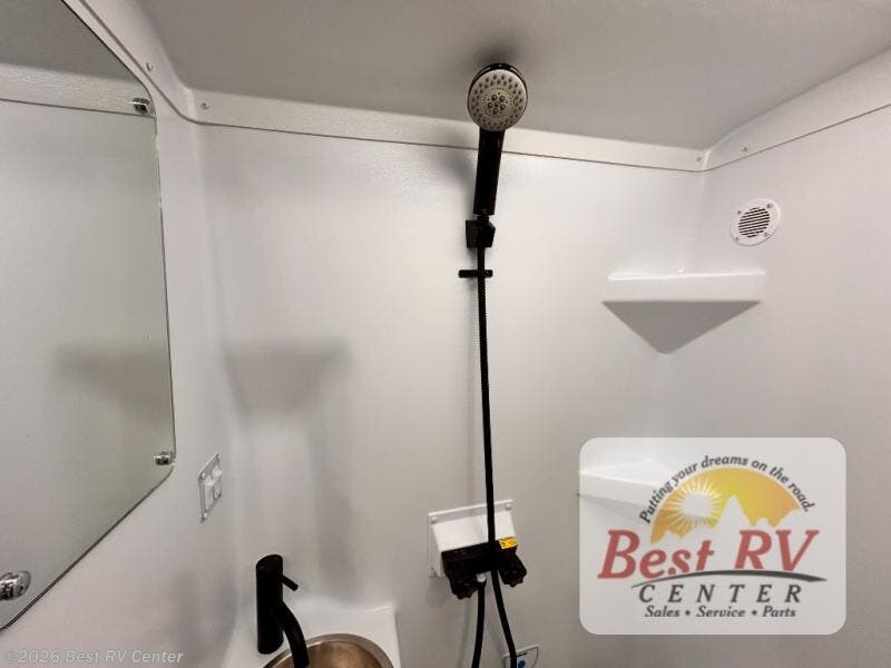 You'll love traveling in this cozy coach for two! The rear sofas convert to a full-width bed when you're ready, and an optional retractable roof rack with Sky Bunk can be added if you're needing additional sleeping space. You can whip up your best breakfast on the single burner induction cooktop or in the microwave oven, and there is a double door refrigerator to keep food fresh. The wet bath includes a cassette toilet, power bath vent with a wall switch and a deluxe shower curtain so you can freshen up each day.