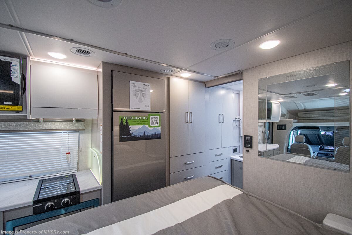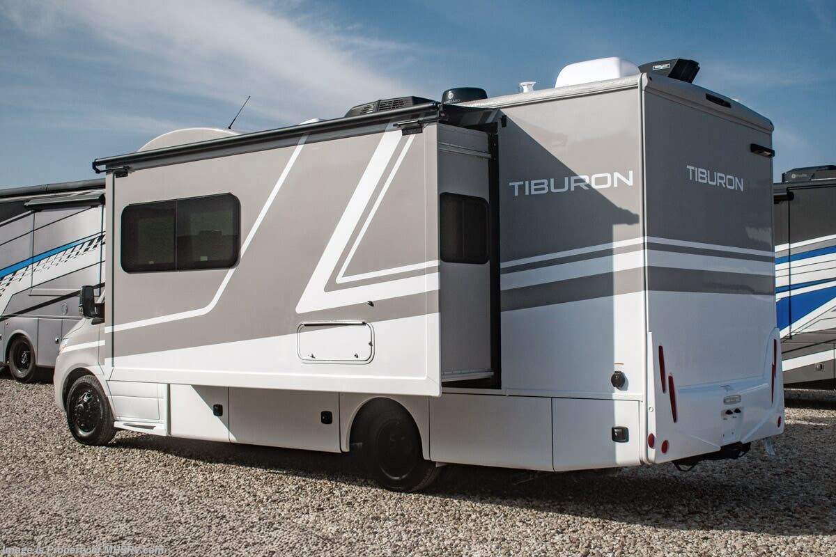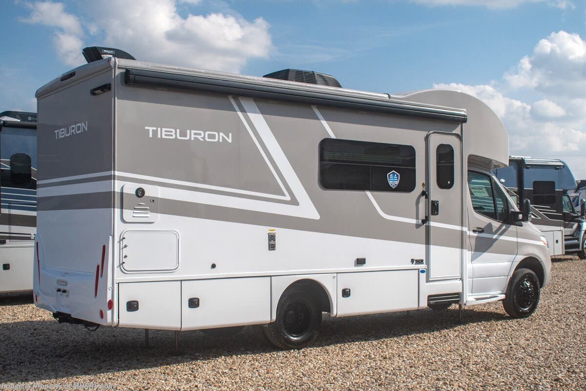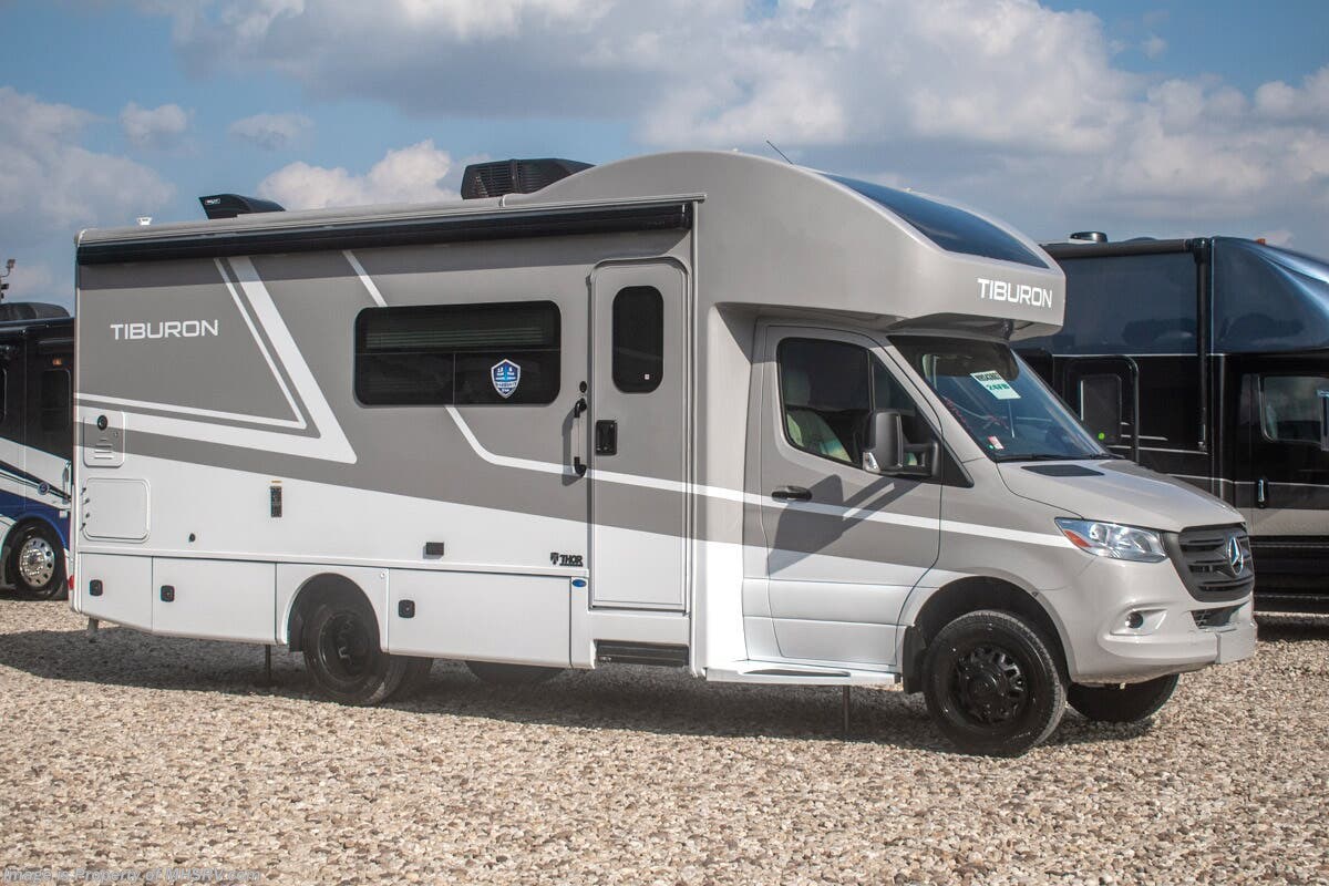 - Electric Theater Seats Shop hundreds of motorhomes including B Van RVs at MHSRV! Choose from Midwest Automotive Designs Patriot – Patriot Cruiser – Forest River OGV V RV – V Cruise – Thor Motor Coach Tranquility – Entegra Coach Launch and more. We also buy and sell quality pre-owned models such as Airstream Interstate – Atlas – Jayco Terrain – Tiffin GH1 – Winnebago Revel – Adventure Wagon – Pleasure Way Plateau – Ascent – Roadtrek – Leisure Travel Wonder – Unity - Coachmen Galleria – Thor Sanctuary and much more. Visit for our complete line-up and the sale prices that have made us the #1 volume selling motor home dealership in the world 12 years in a row! About This RV This Luxury RV measures approximately 25 feet 8 inches in length and rides on the premier Mercedes Benz Sprinter chassis equipped with an Active Braking Assist system, Attention Assist, Active Lane Assist, a Wet Wiper System and Distance Regulator Distronic Plus. You will also find a tank-less water heater, generator and the ultra-high-line cabinetry from TMC that set this coach apart from the competition! The all new Tiburon Sprinter also features a fiberglass front cap with skylight, an armless power patio awning with integrated LED lighting, frameless windows, a multimedia dash radio with Bluetooth and navigation, remote exterior mirrors, back up system, swivel captain’s chairs, full extension metal ball-bearing drawer guides, Rapid Camp+, holding tanks with heat pads and much more. About Us For more details on this unit, our full inventory, brochures, window stickers, videos, photos, and customer reviews, visit or call 800-335-6054 for the Texas location or 334-288-0331 for our Alabama location. At Motor Home Specialist, we never charge prep or orientation fees. Every new RV sale includes a multi-point inspection, full interior and exterior detail. At our Texas location we also offer a high-pressure rain booth test—an exclusive service in the industry. You'll also receive a comprehensive coach orientation with an MHSRV technician and a complimentary night in our delivery park with full hook-ups at our Texas Location. --Why Pay More? Why Settle for Less?—