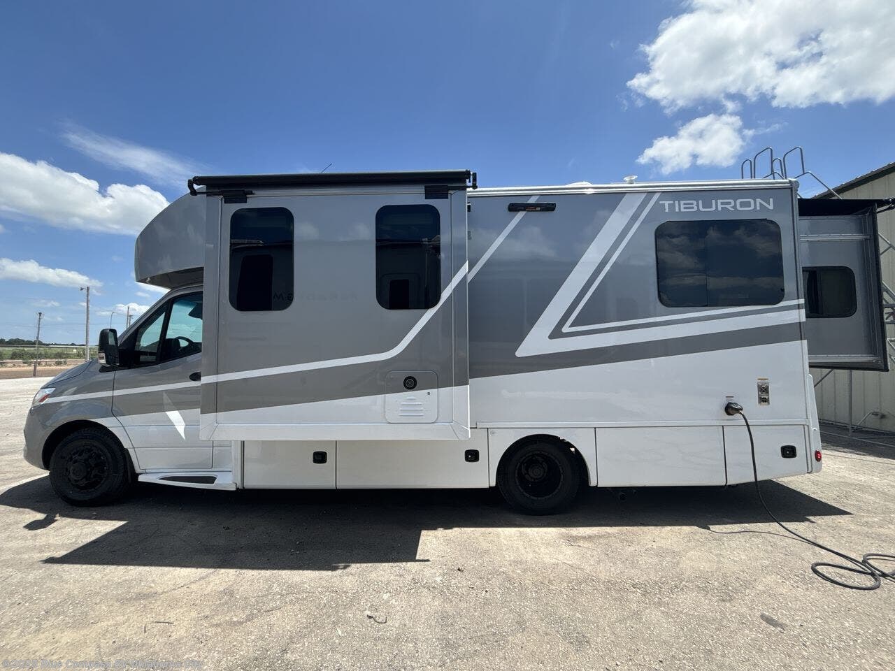 You will be well on your way to unforgettable journeys when you purchase the Thor Motor Coach Tiburon Sprinter Class C diesel motorhome and add it to your line-up! What makes the Tiburon Sprinter so special are the elegant and stunning interiors combined with the eye-catching exterior and powerful Mercedes-Benz Sprinter chassis with a 2.0L l-4 engine and 211HP. You will stay safe as you travel because the Mercedes-Benz safety package includes active braking assist, attention assist, active lane keeping assist, a wet wiper system, and a distance regulator distronic plus. As you tackle each adventure, you'll enjoy the cockpit features that allow you to enjoy traveling, like the Mercedes-Benz multimedia dash radio with Bluetooth®, navigation, and SiriusXM® and the rearview mirror with back-up system. And don't overlook the electrical and plumbing features! You will be impressed by the Winegard® ConnecT™ 2.0 Wi-Fi/4G/TV antenna, tankless water heater, and 200W solar charging system with power controller.