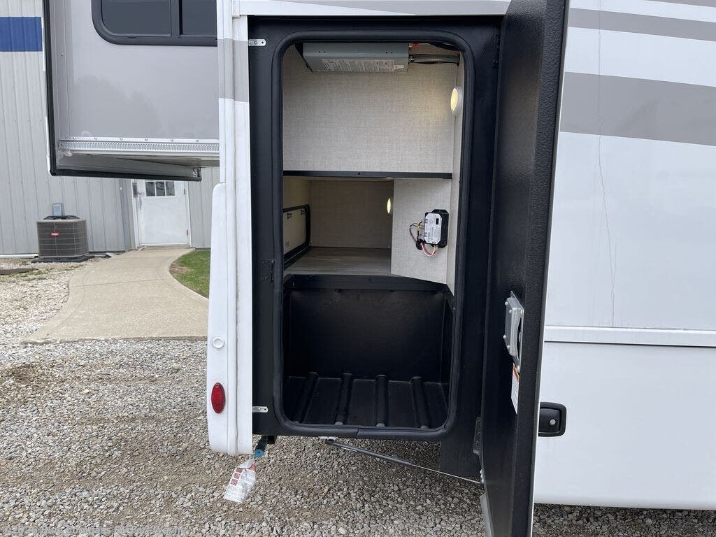 Whatever you want to do and wherever you want to go, take this Tiburon Sprinter Class C diesel motorhome with you! It will offer you a high level of comfort and an exceptional amount of convenience with its many unique additions, like the USB charging port, the window privacy roller shades, telescoping ladder for the bunk above the cab, and the flip-up countertop extension in the kitchen. Sit back and relax on the theater seating and the 68.5" dinette, and enjoy some entertainment from the 39" LED TV. The separated bathroom has the toilet and vanity on one side of the coach and the 24" x 32" shower on the other, and the private bedroom has a flip-up full size bed slide for more interior space, plus a wardrobe for your clothes.