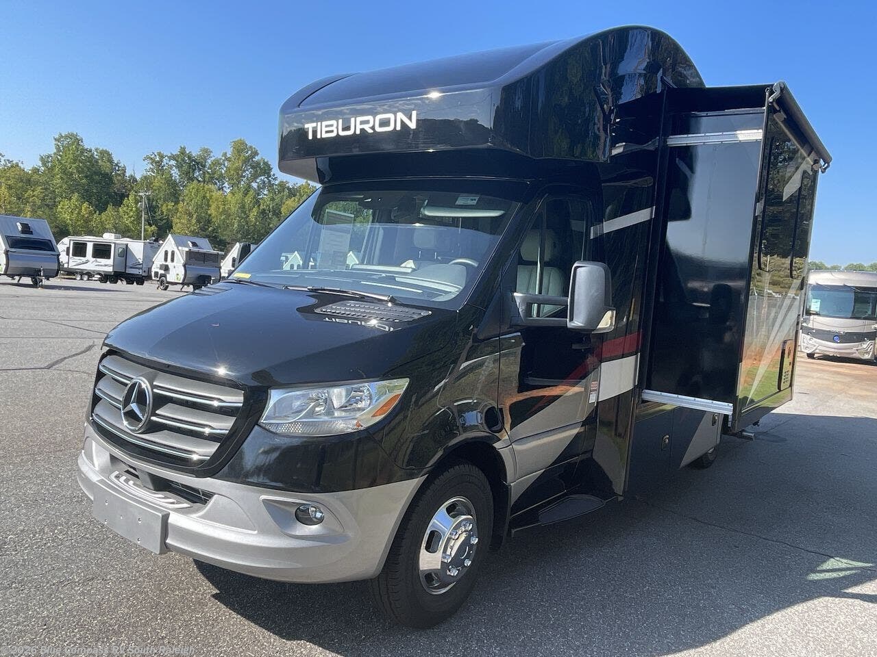 You will be well on your way to unforgettable journeys when you purchase the Thor Motor Coach Tiburon Sprinter Class C diesel motorhome and add it to your line-up! What makes the Tiburon Sprinter so special are the elegant and stunning interiors combined with the eye-catching exterior and powerful Mercedes-Benz Sprinter chassis with a 2.0L l-4 engine and 211HP. You will stay safe as you travel because the Mercedes-Benz safety package includes active braking assist, attention assist, active lane keeping assist, a wet wiper system, and a distance regulator distronic plus. As you tackle each adventure, you'll enjoy the cockpit features that allow you to enjoy traveling, like the Mercedes-Benz multimedia dash radio with Bluetooth®, navigation, and SiriusXM® and the rearview mirror with back-up system. And don't overlook the electrical and plumbing features! You will be impressed by the Winegard® ConnecT™ 2.0 Wi-Fi/4G/TV antenna, tankless water heater, and 200W solar charging system with power controller.
