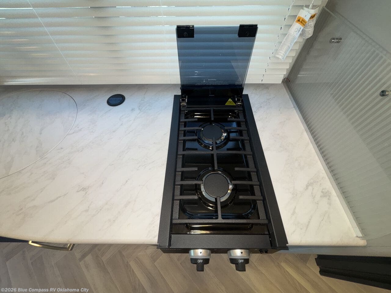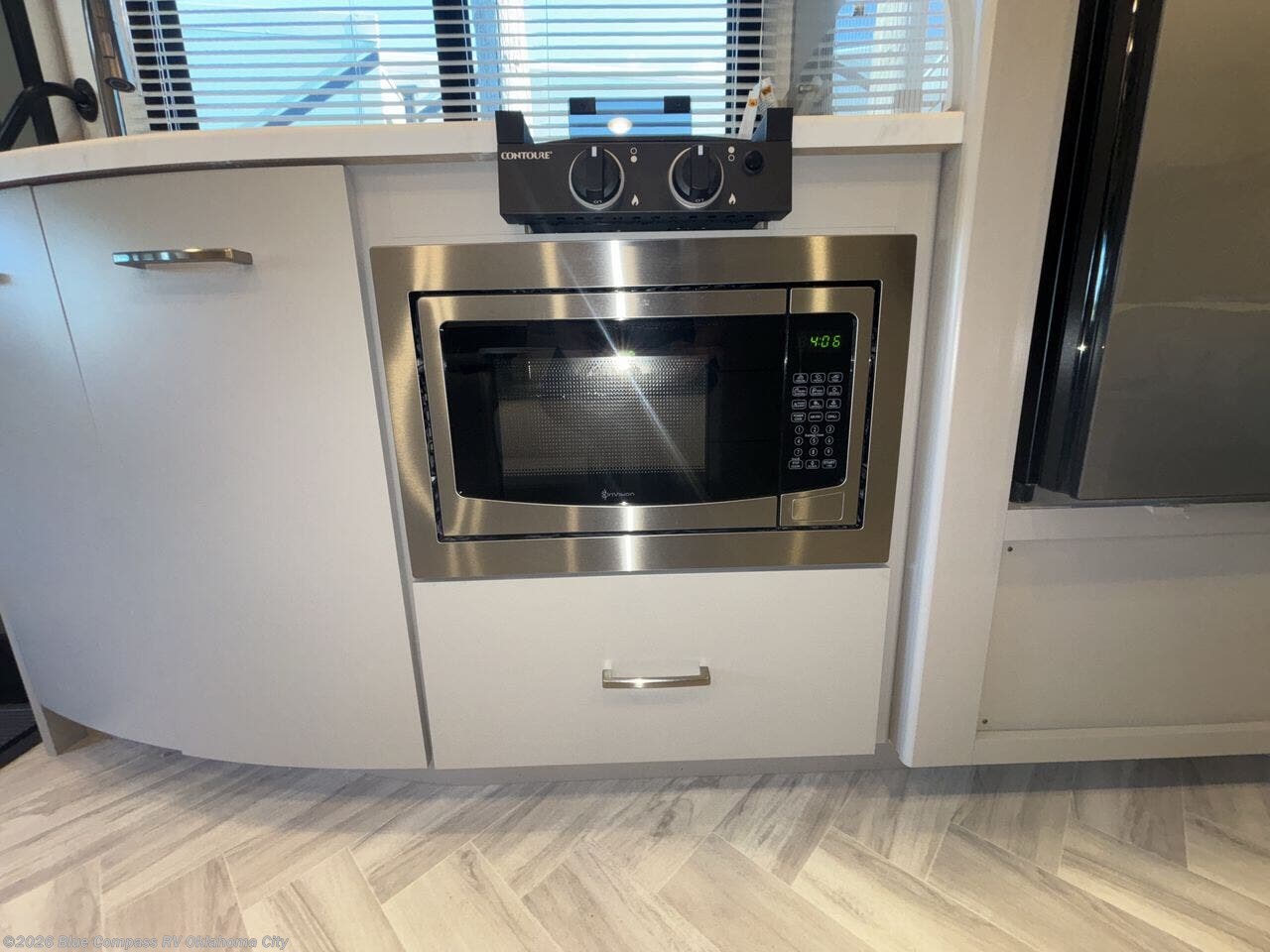 You can turn dreary days into exciting adventures simply by adding this Tiburon Sprinter Class C diesel motorhome to the mix! There is lots of convenience in the kitchen. You'll find a refrigerator, pressed laminate countertops with an under-mounted sink that has a sink cover, a two-burner gas cooktop with a glass cover, a convection microwave with an air fryer, and a large stainless steel single-bowl sink and faucet with pull-down sprayer. The bathroom is also accommodating, and it features a skylight above the 24" x 32" shower, a foot-flush toilet, and a curved anti-microbial shower curtain. A large closet sits in between the flip-up RV queen bed and the 76" Dream Dinette with footrests.