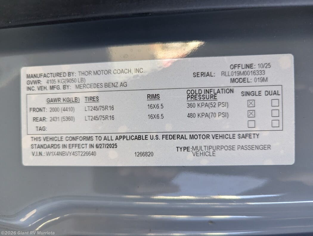 Request More Info on this 2026 Thor Motor Coach Tranquility 19M Offered for sale by Giant RV