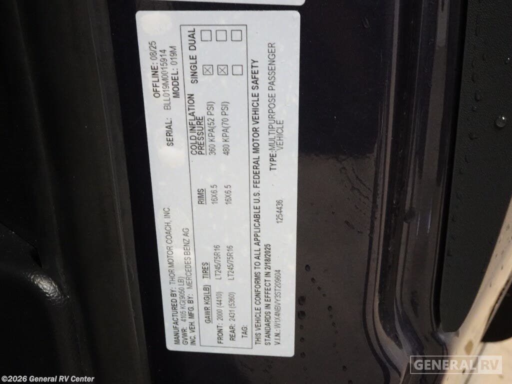 Request More Info on this 2026 Thor Motor Coach Tranquility 19M Offered for sale by General RV Center